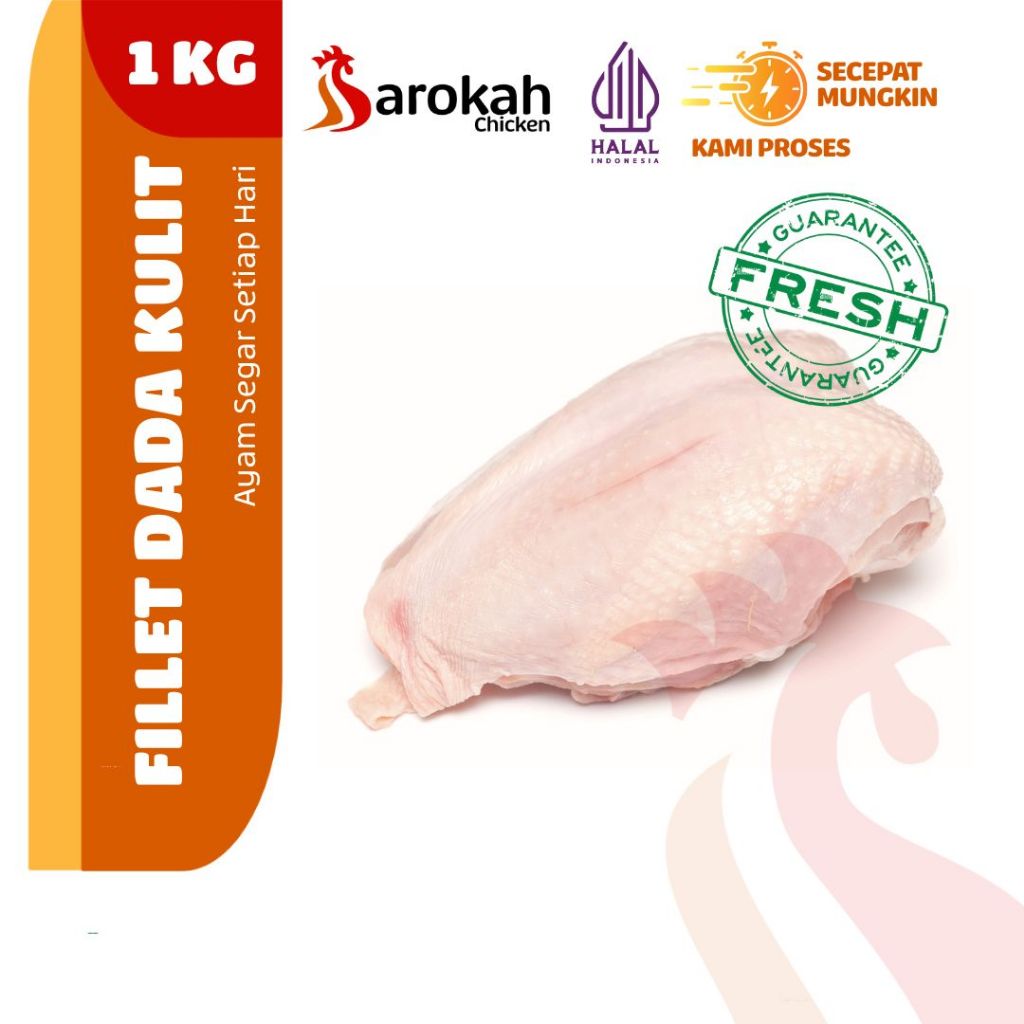 DADA AYAM FILLET KULIT SEGAR (BONELESS DADA KULIT) - 1 KG - DIPOTONG SAAT PEMESANAN