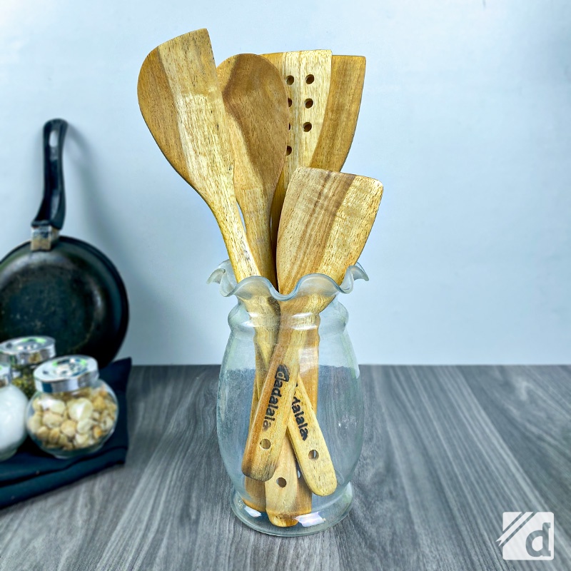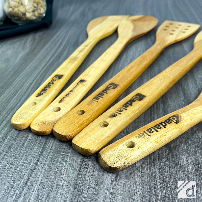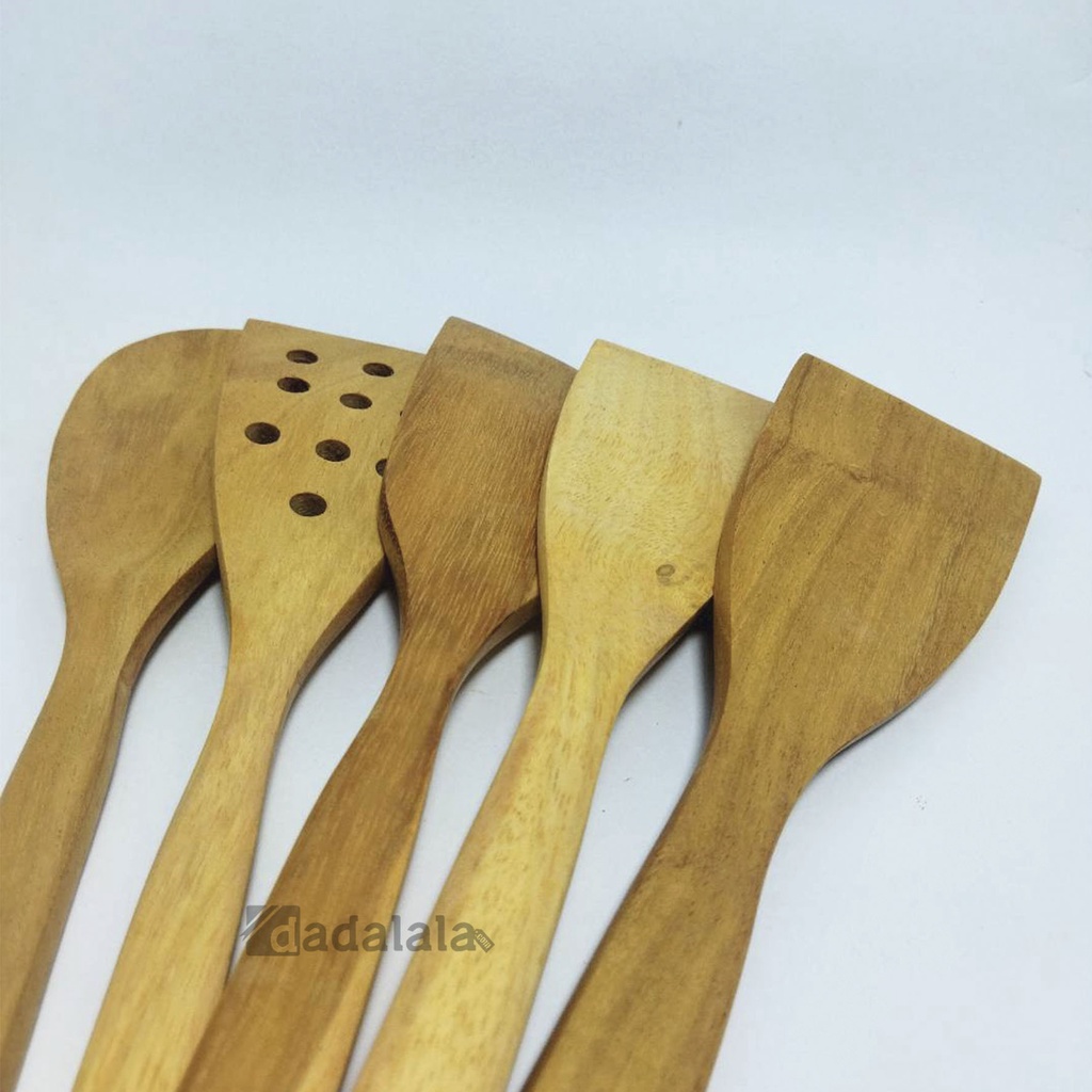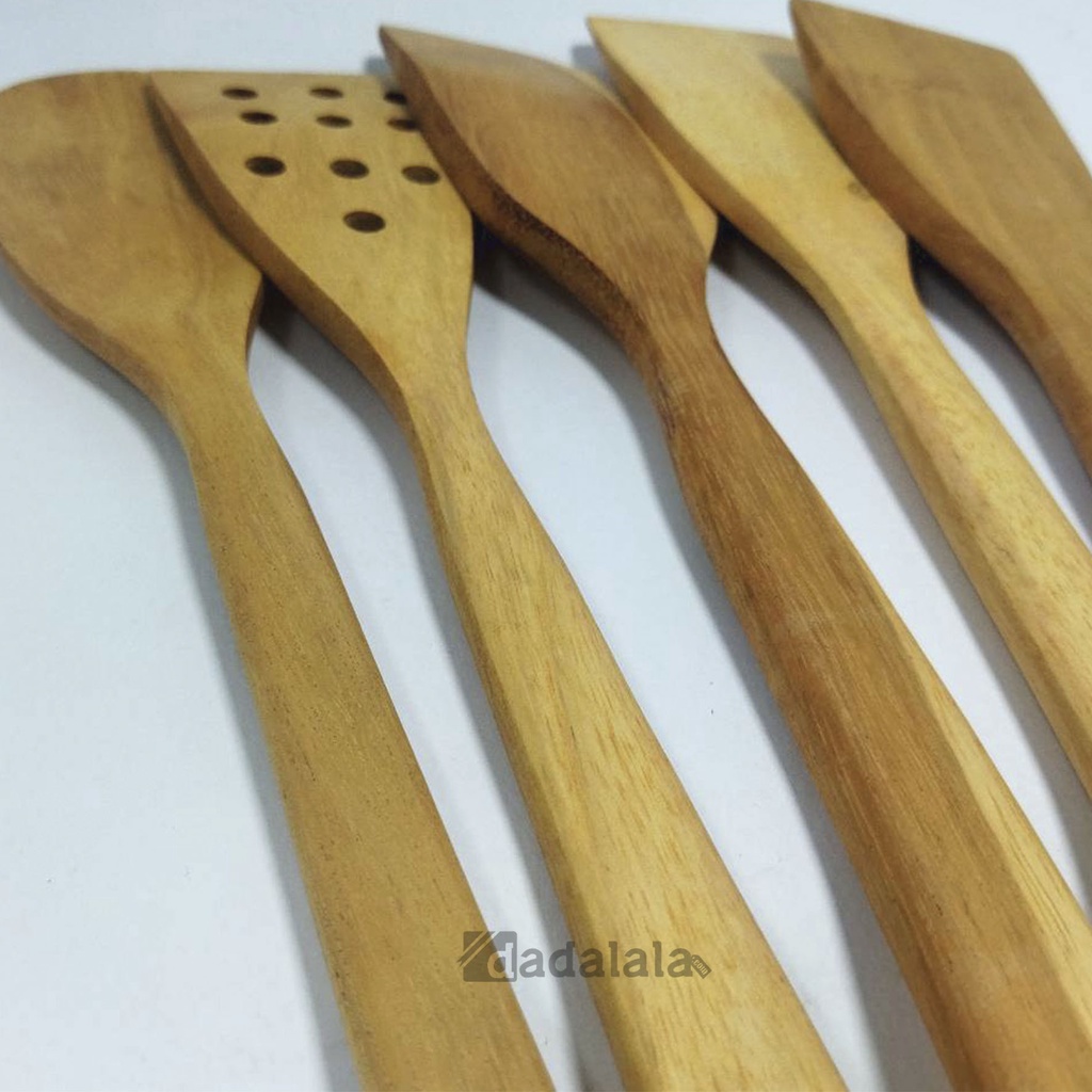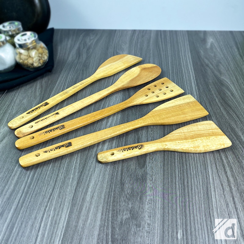 DADALALA [Isi 5 pcs] Spatula Kayu Set Anti Lengket Bahan Kayu Lamtoro