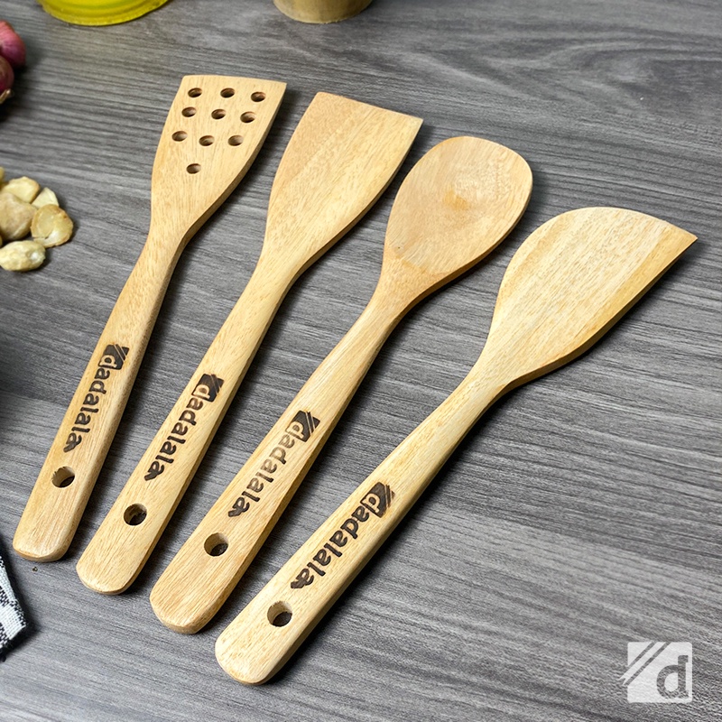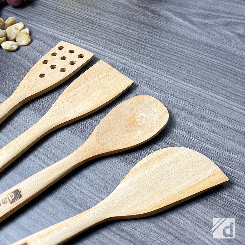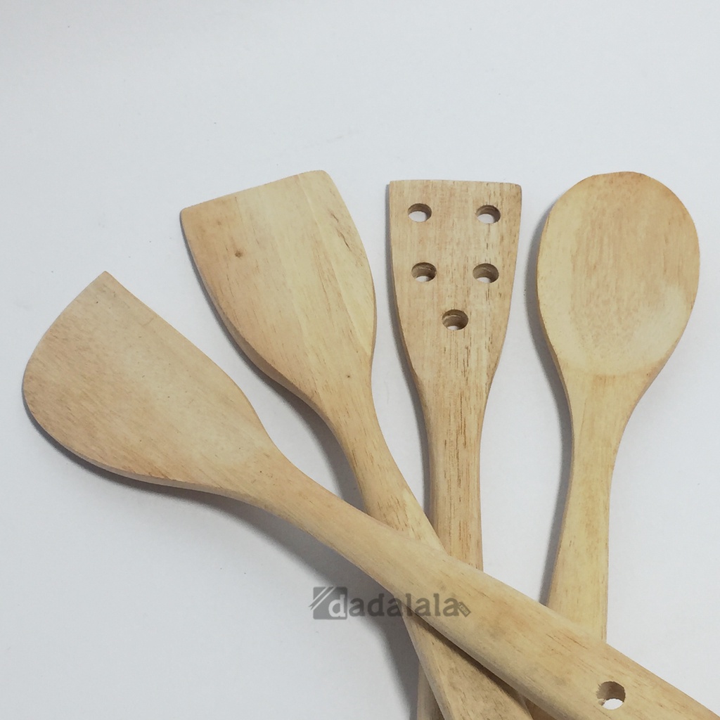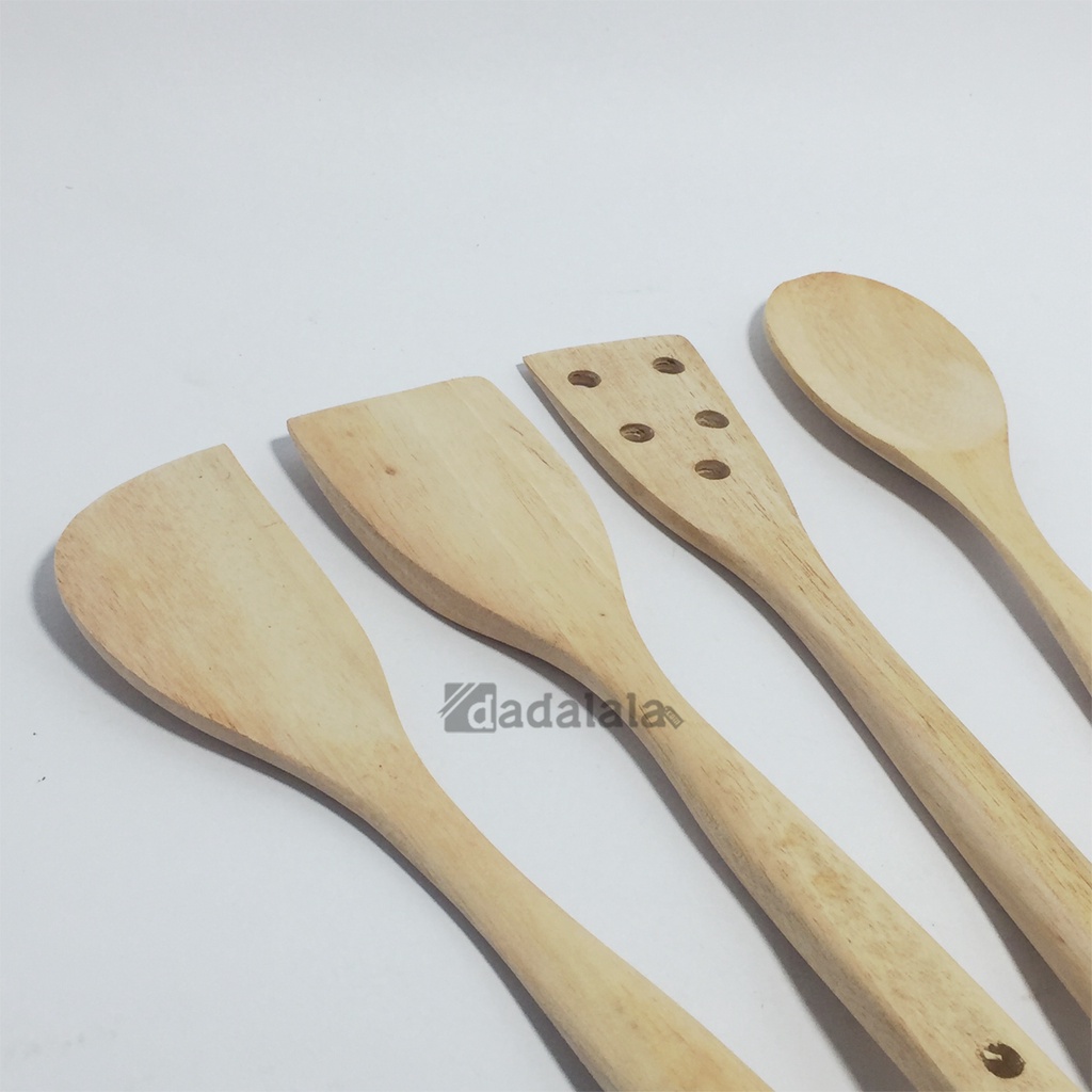 DADALALA Sodet Kayu MINI (1 Set 4 Pcs) Spatula Anti Lengket Bahan Kayu Mahoni Tahan Panas