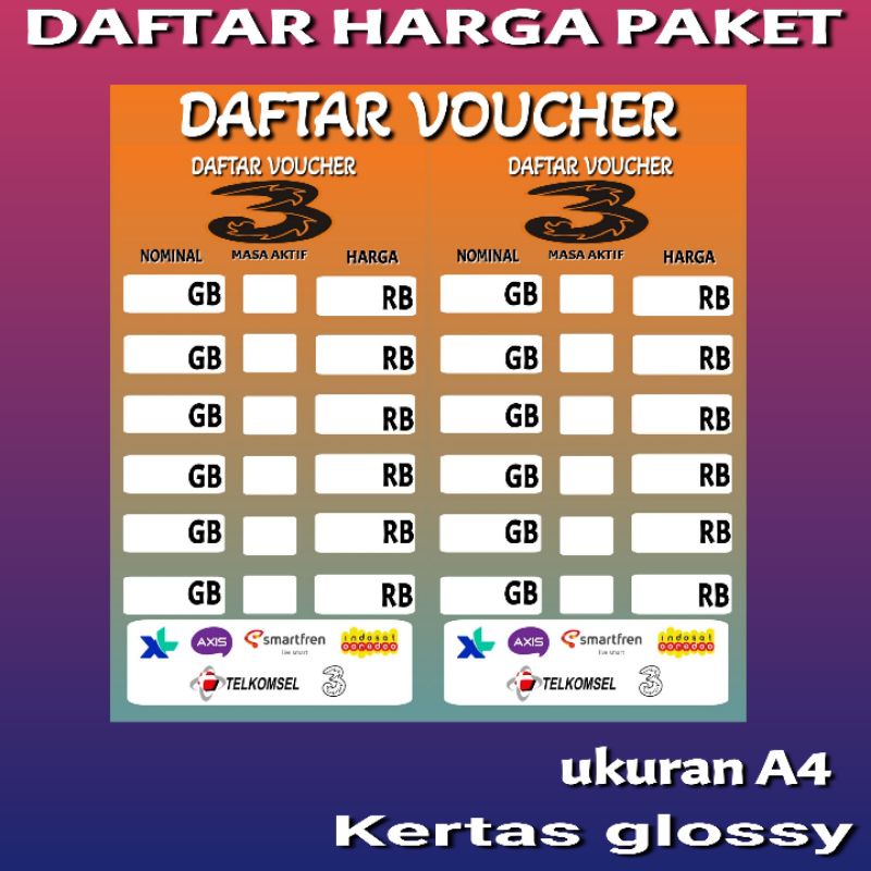DAFTAR HARGA PAKET DATA KONTER DAN PHONCEL M2