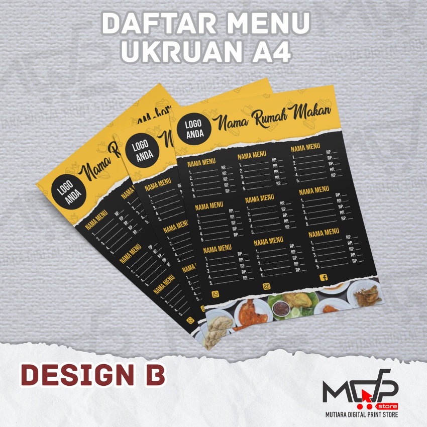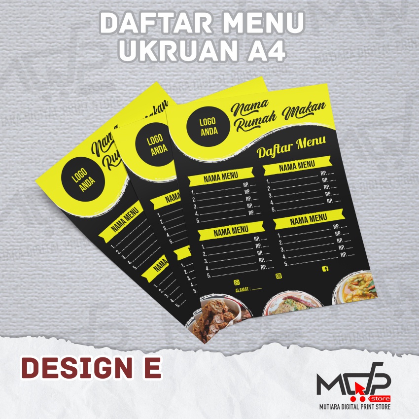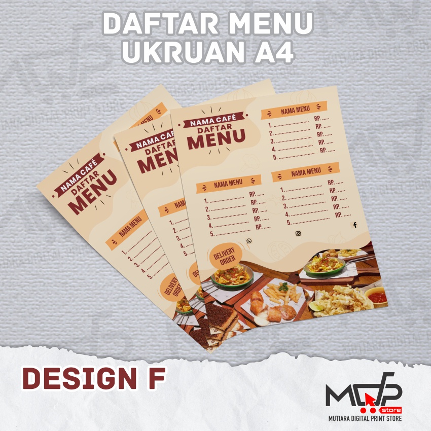 DAFTAR MENU MAKANAN MINUMAN CAFE / RESTO MDPRINTSTORE