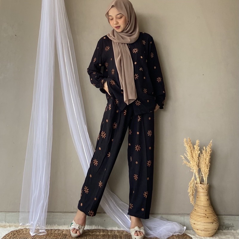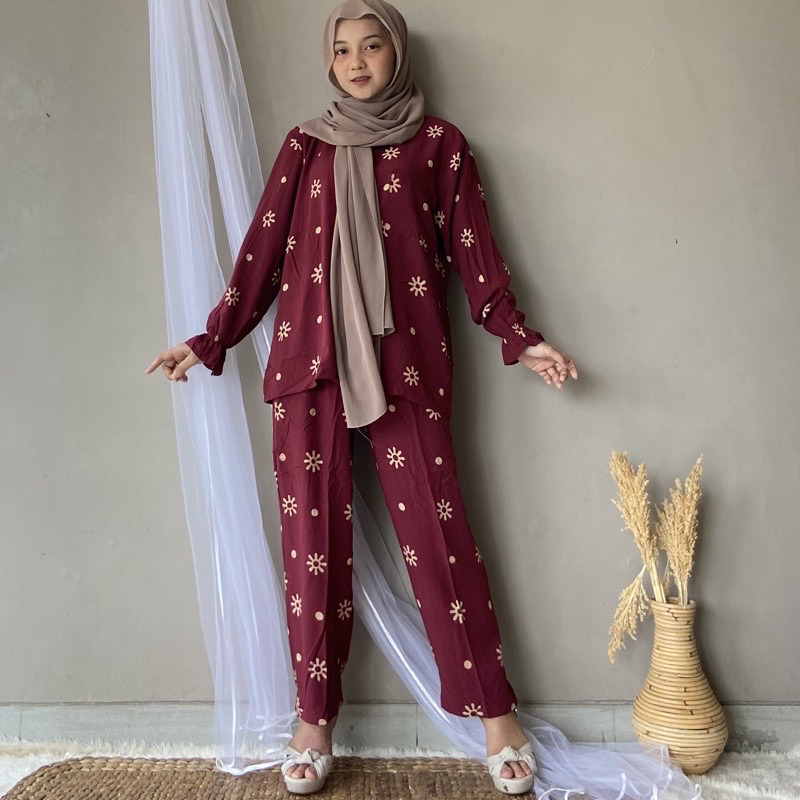 DAISY ONE SET RAYON LENGAN PANJANG / BUNGA DAISY / PAJAMAS RAYON / PIYAMA RAYON / BAJU TIDUR RAYON