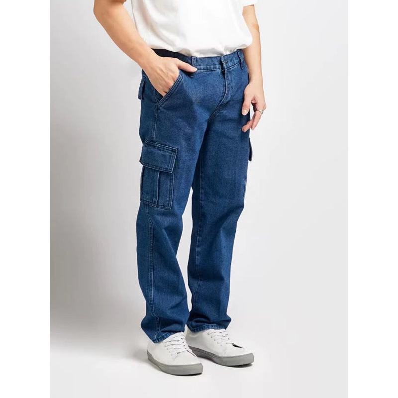 DALT - Cargo Jeans Panjang Pria Reguler Standar Loose Cargo Gombrong Jeans Pria Celana Korea Pria
