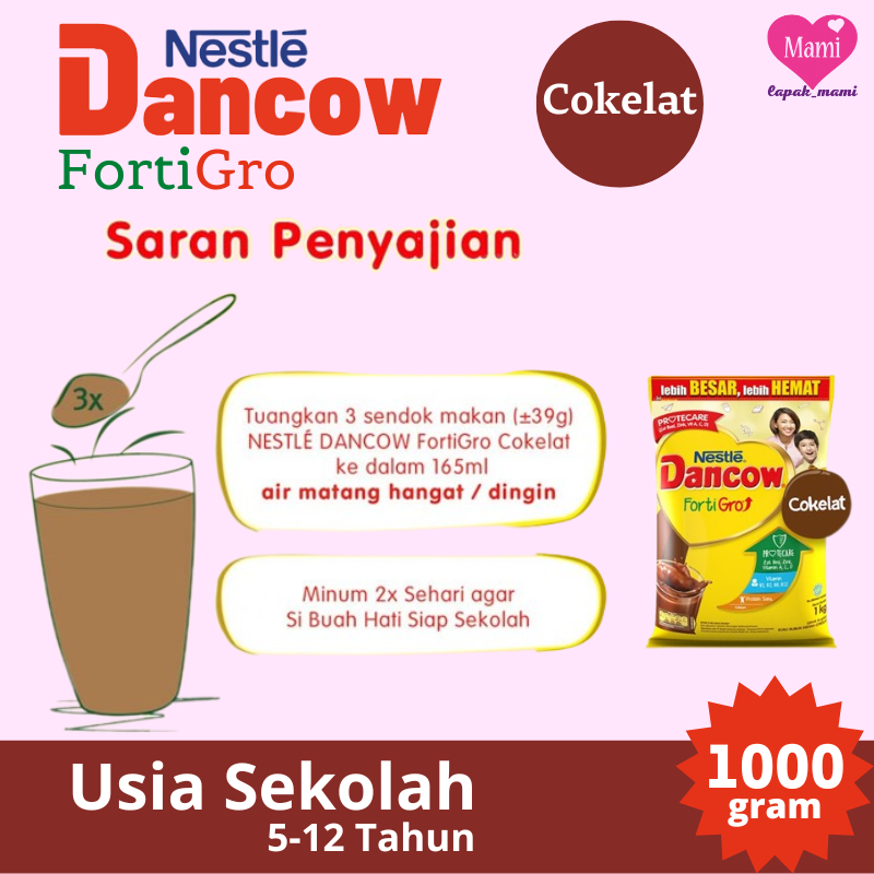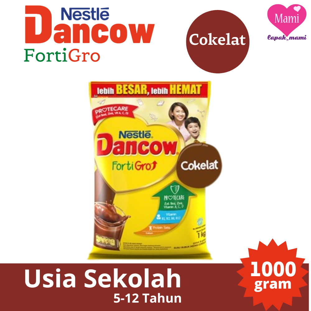 DANCOW Fortigro Milk Powder 1000g Pouch Susu Bubuk Instant dan Cokelat Untuk Anak Siap Sekolah