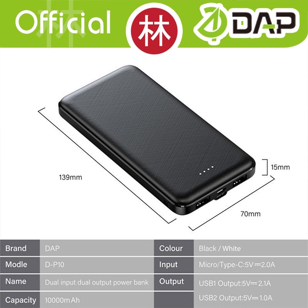 DAP D-P10 10000mAh Dual Output & Input Powerbank
