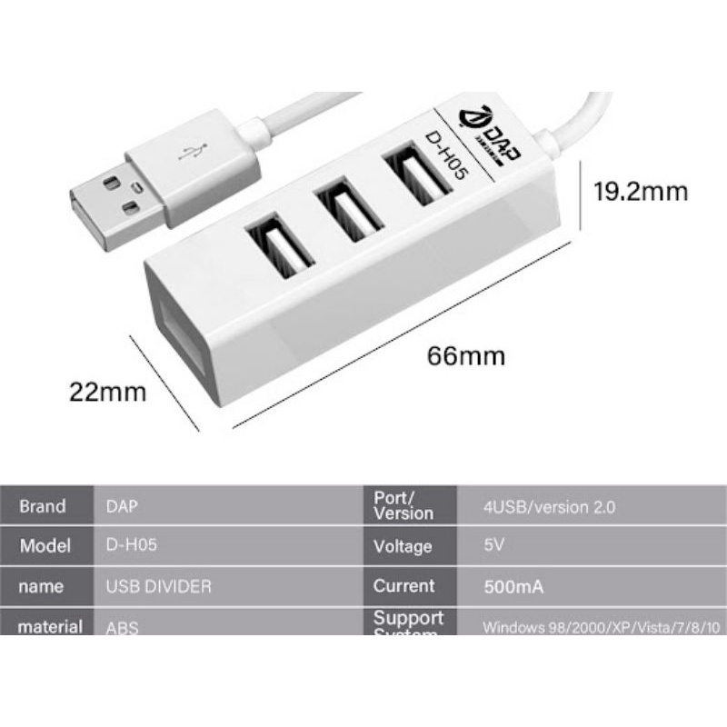 DAP USB HUB D-H05 15mm / D-H06 1M 2.0 Version 4 Port USB Small Town Plug In Original DAP