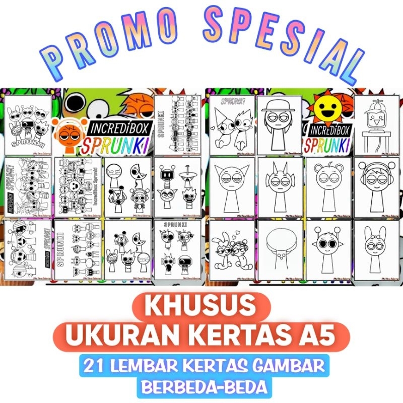 PROMO DAPAT 2 TEMA SPRUNKI / Kertas Gambar Mewarnai TEMA SPRUNKI & SPRUNKI V1 (21 Lembar) Kertas Tebal 160gsm