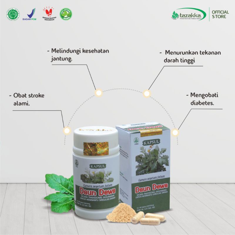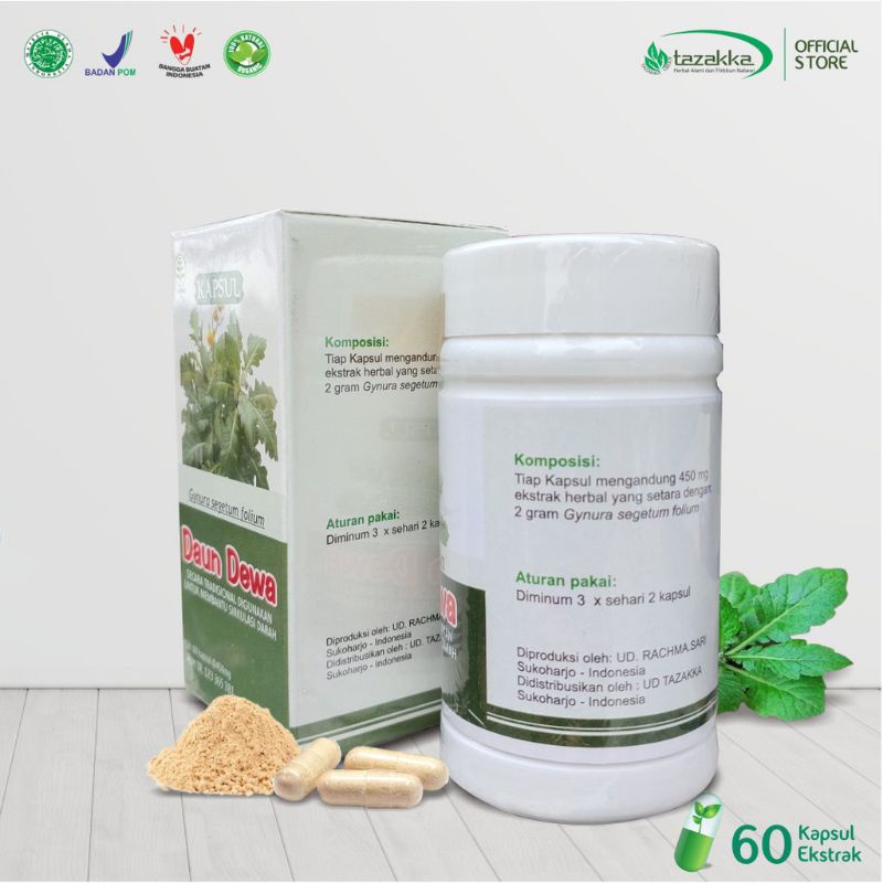 DAUN DEWA Tazakka Isi 60 - Obat Herbal Asam Urat Sirkulasi Darah Lemak Darah Hipertensi Obat Darah Tinggi