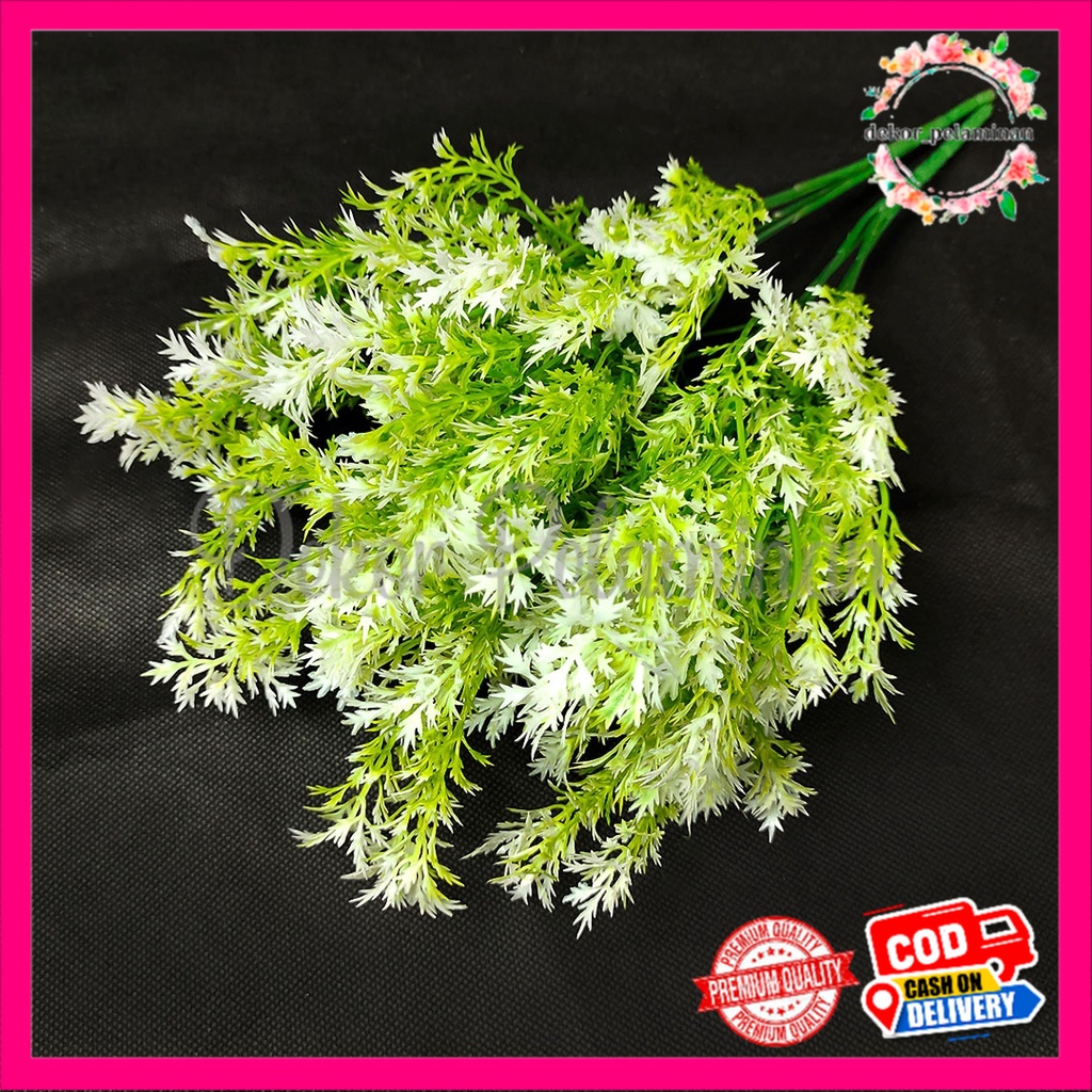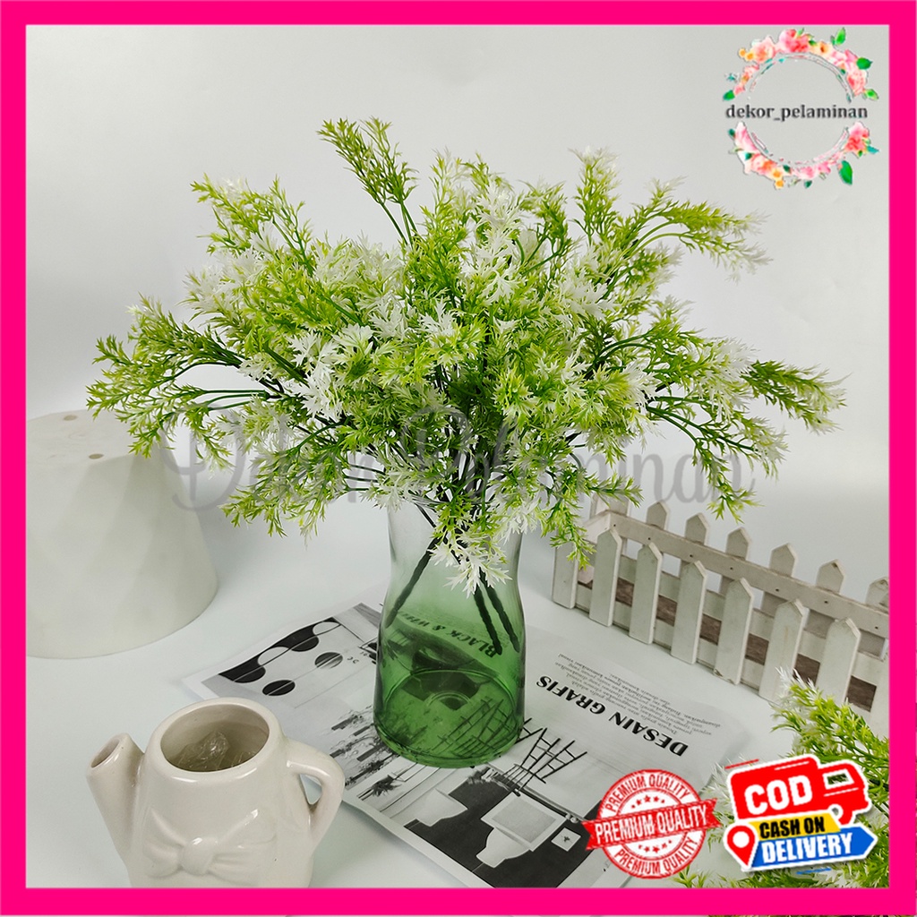 DAUN RUMPUT LIAR PLASTIK CABANG 5 - AKSESORIS UNTUK PEMANIS BUCKET BUNGA & DEKORASI WEDDING - RUMPUT HIASA N TAMAN DEKORASI PELAMINAN WEDDING