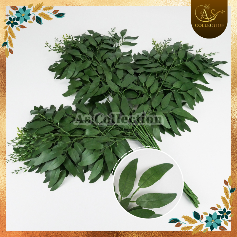 DAUN WILLOW LUSINAN CABANG 3 DAUN ARTIFICIAL DEKORASI PERNIKAHAN DAUN RUSCUS ZAITUN BUATAN TANGAN TANAMAN BUNGA HIJAU PLASTIK DECOR RUMAH LUAR RUANGAN OUTDOOR IMPORT MURAH BERKUALITAS