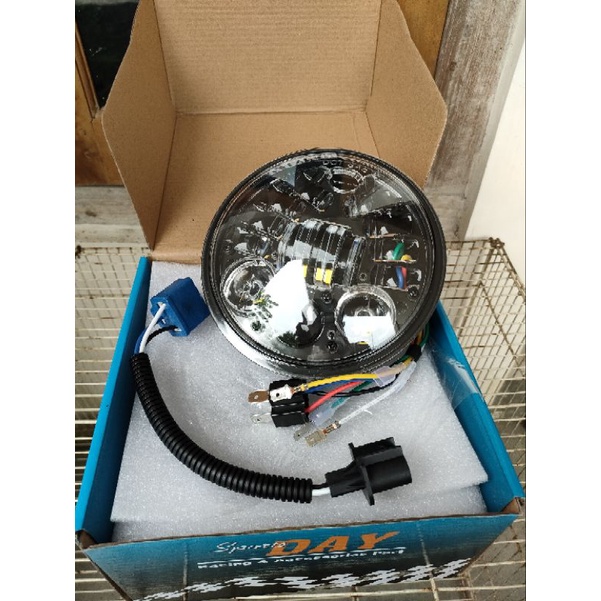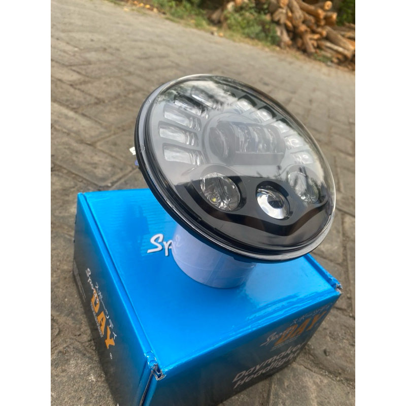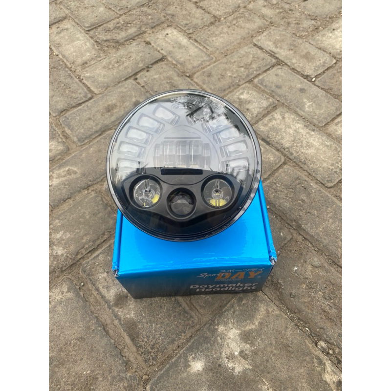 DAYMAKER DOBEL SENJA BIRU DAN PUTIH 5,75 INCH 16 LED DOT SAE CAHAYA SUPER TERANG DAN TEBAL SENJA PUTIH KUNING JAUH/DIM PUTIH PNP BATOK L2G JUTE VAN VAN CB125 DAN BATOK PESEK