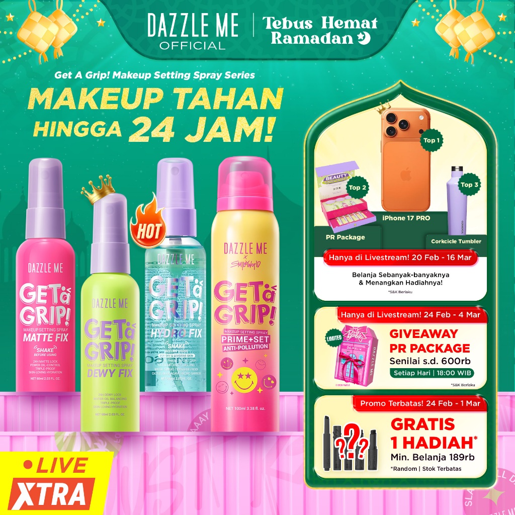 [BPOM] DAZZLE ME Get a Grip! Makeup Setting Spray Dewy Fix - Setting Spray Makeup Tahan Lama Flawless & Melembabkan Kulit 24 Jam Transferproof