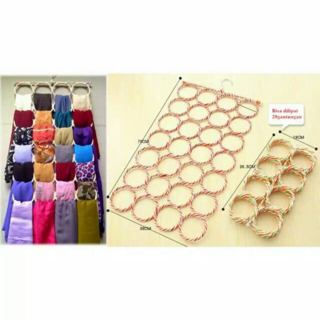 DC263 Jilbab Hanger Hijab Organizer Ring Bulat Scarf Kerudung Syal Hanger 12 Ring dan 28 Ring