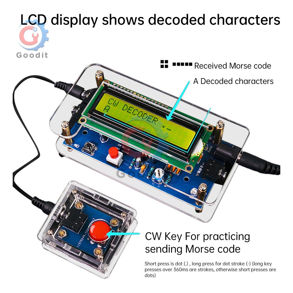DC9V DIY CW Morse Code Trainer Kit, LCD Decoder for Radio Circuit&Soldering Practice Projects,CW Button/Case/US Charger Optional