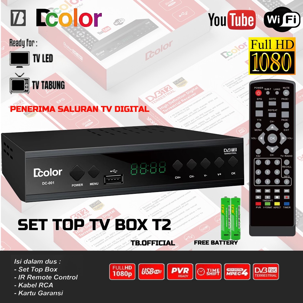 DCOLOR 2nd Generation SET TOP BOX DIGITAL DVB T2 WIFI STB Antena SUPER HD TB