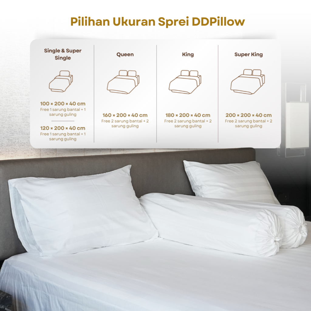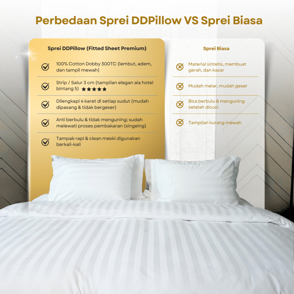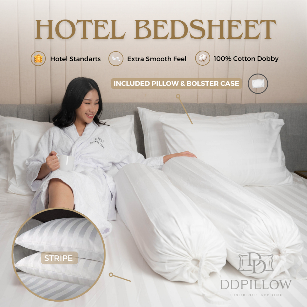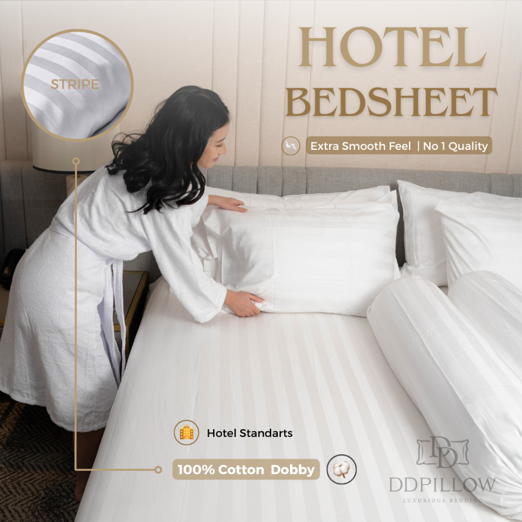 DDPillow Fitted Bedsheet / Sprei Hotel Luxury Stripe, Spek Hotel Bintang 5, 100% Cotton Dobby 300TC