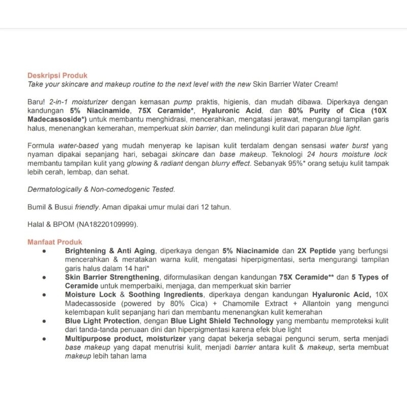 DEAR ME BEAUTY Skin Barrier Water Cream 30gr