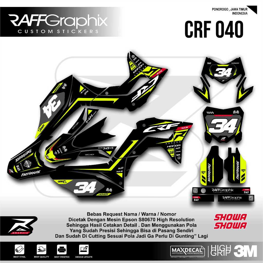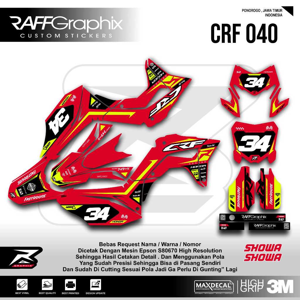 DECAL CRF 150 L MERAH KUNING FLUO