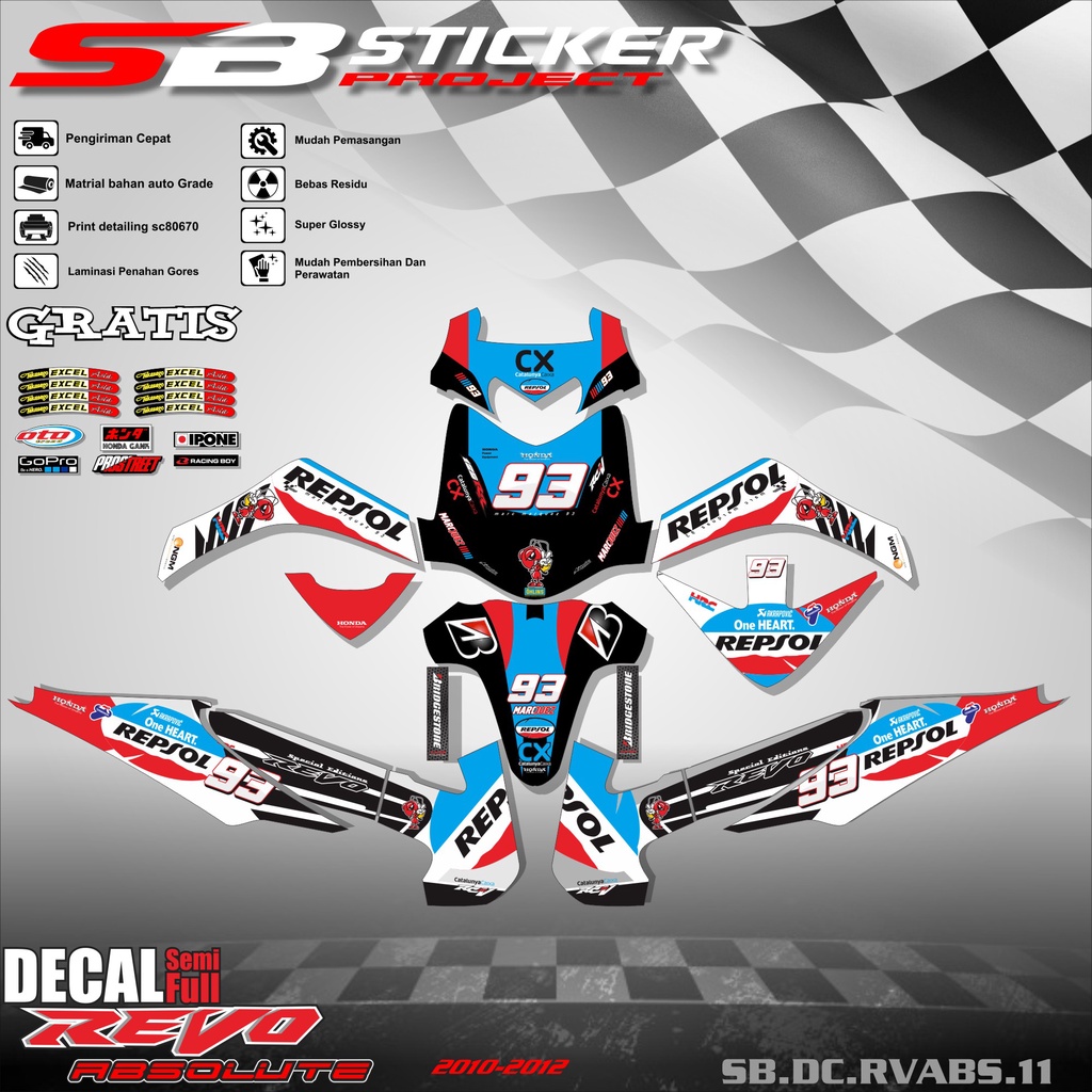 DECAL FULL BODY REVO ABSOLUTE- DECAL STICKER FULL BLOCK HONDA REVO ABSOLUTE 2010-2012 REPSOL