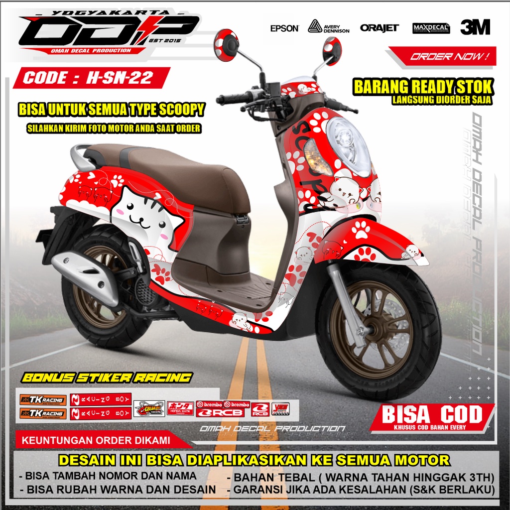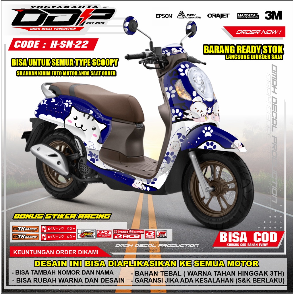DECAL SCOOPY FULL BODY VARIASI AKSESORIS DEKAL STIKER STRIPING HONDA ALL NEW SCOPY FI ESP 2021 MOTOR MOTIF LUCU TERMURAH BAHAN PREMIUM TEBA TERLARIS BISA COD GRATIS ONGKIR 2017 2018 2019 2020 2022 WARNA MERAH PUTIH MOTIF KEREN BIRU NAVY HITAM SN 022