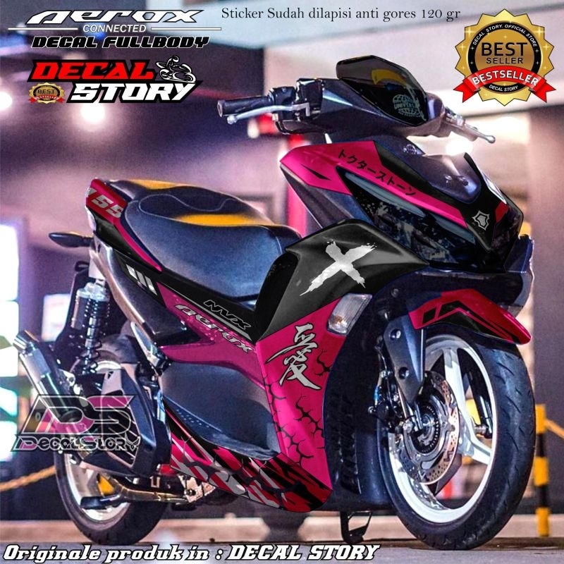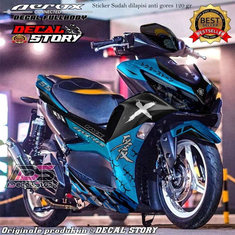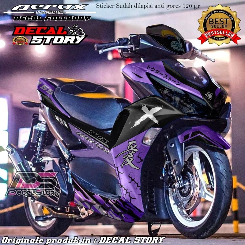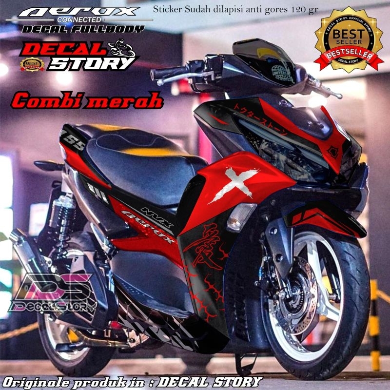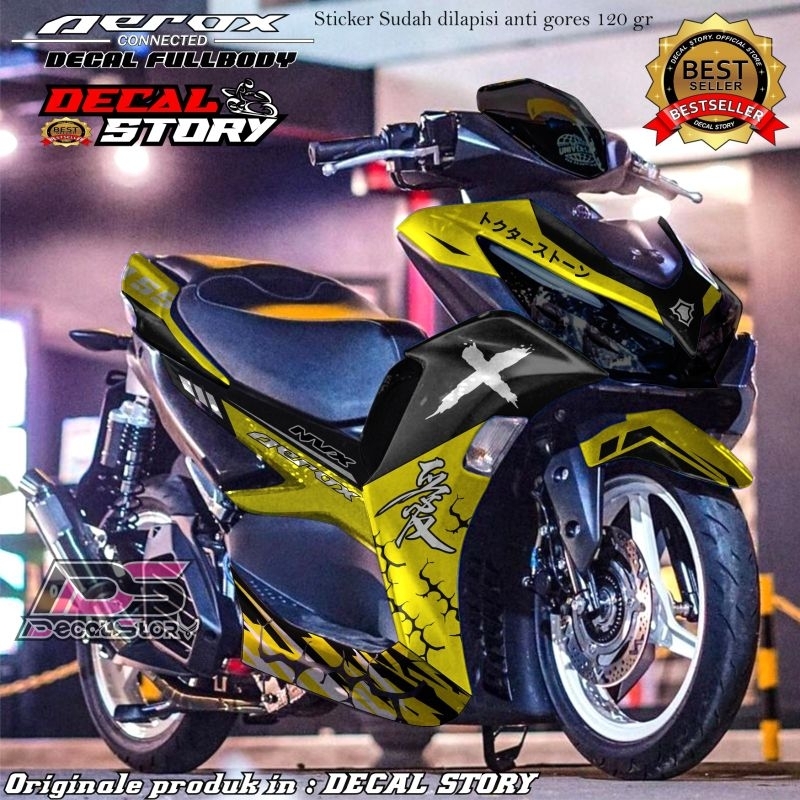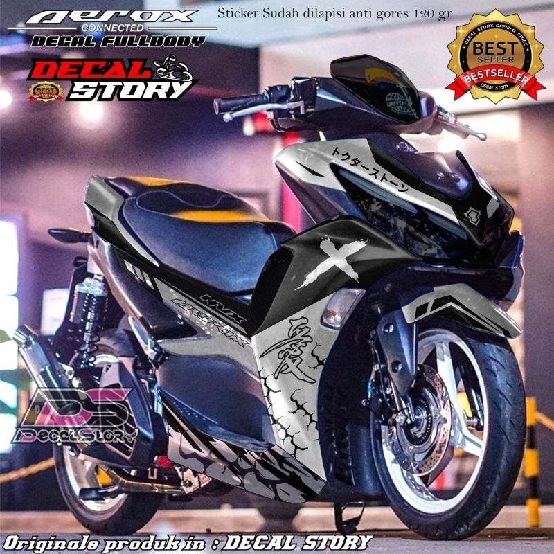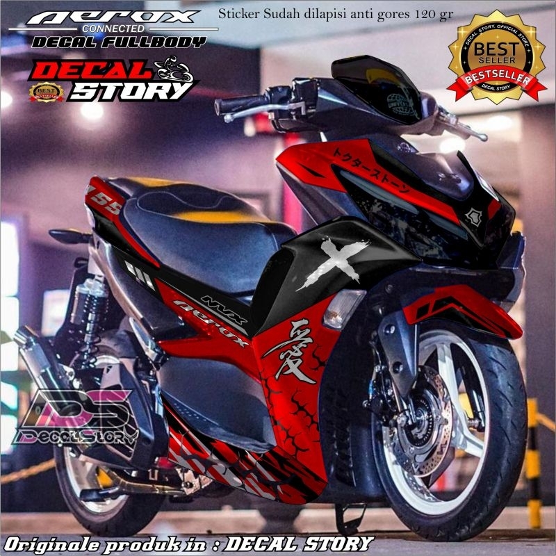 DECAL STICKER AEROX connected All new aerox sticker fullbody super glossy / doff motif kanji X petir motif terbaru 2024 bisa custom warna nama dll masuk aerox old