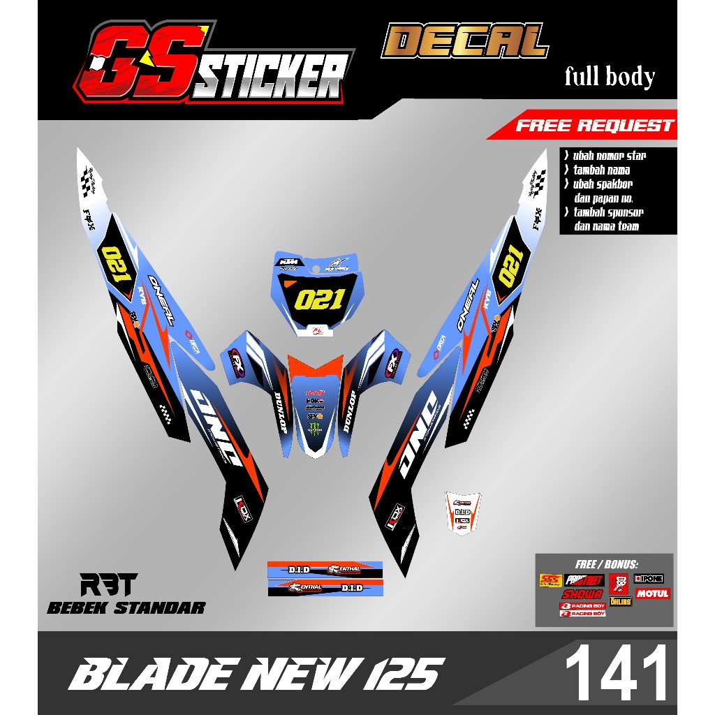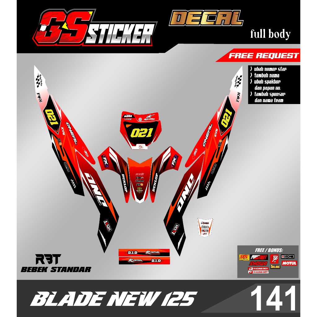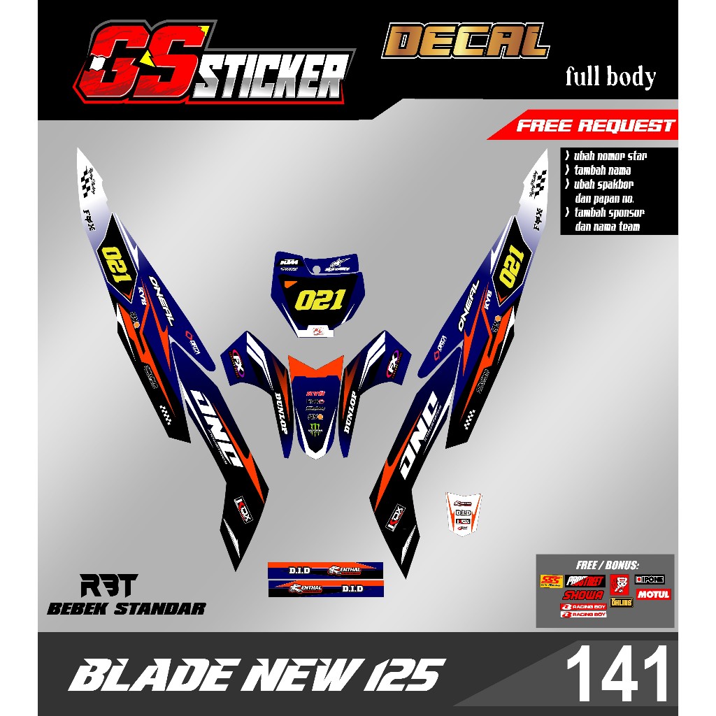 DECAL STICKER FULL BODY MOTOR RBT BLADE 125 NEW RBT BEBEK MODIF SUPERMOTO RBT new terbaru RBT GS 141