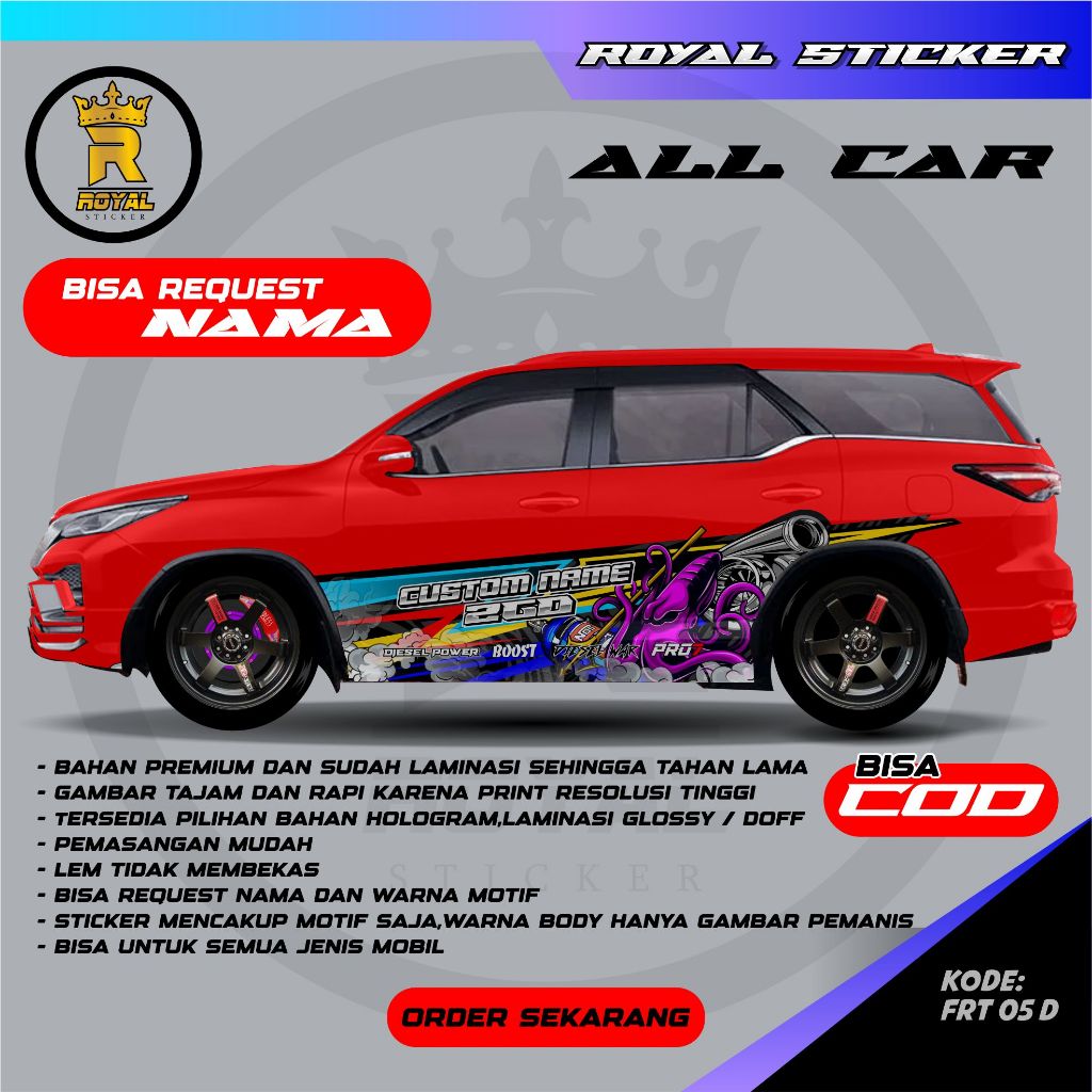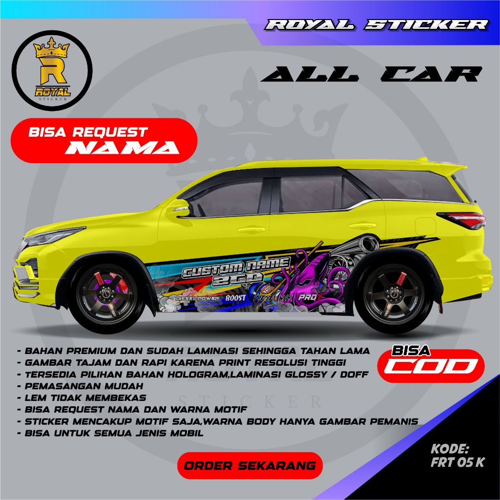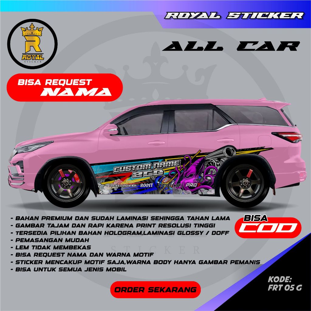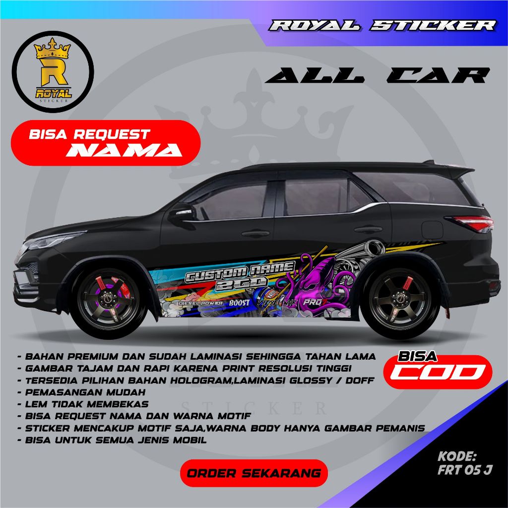 DECAL STIKER MOBIL FORTUNER DESAIN VARIASI TERBARU FREE REQUEST TULISAN / STIKER MOBIL / DECAL MOBIL FORTUNER - FRT 05