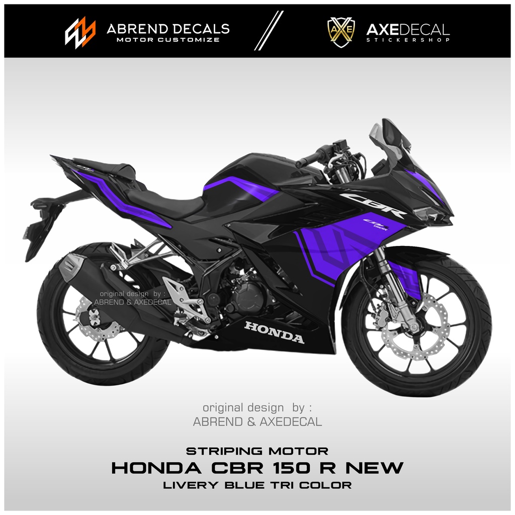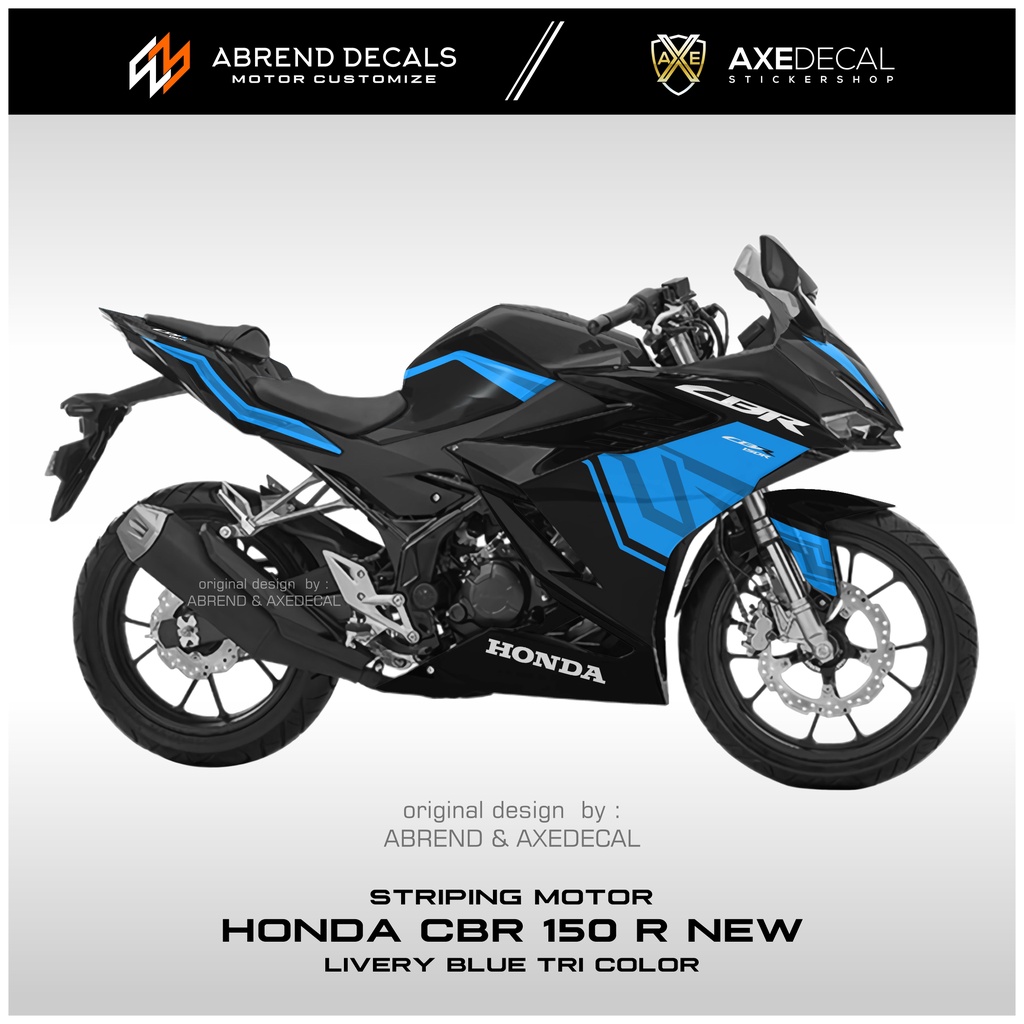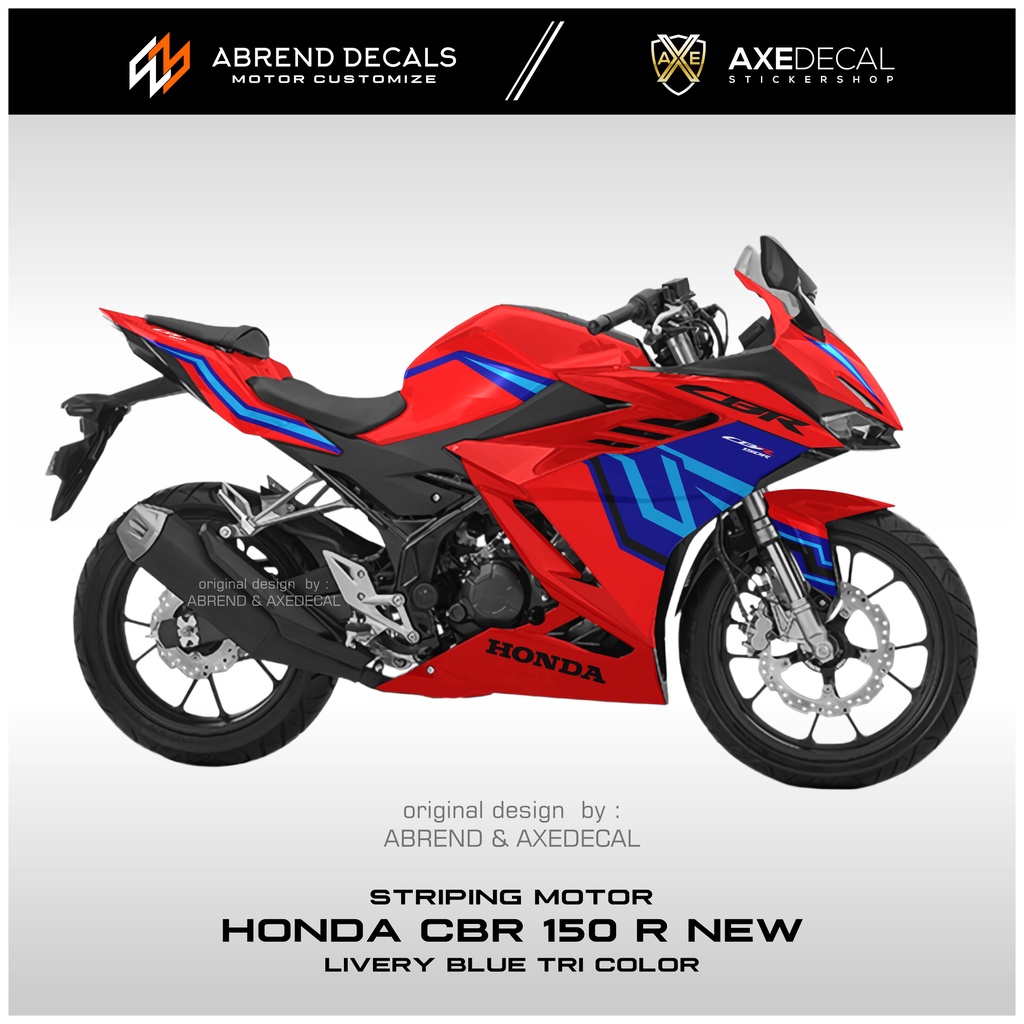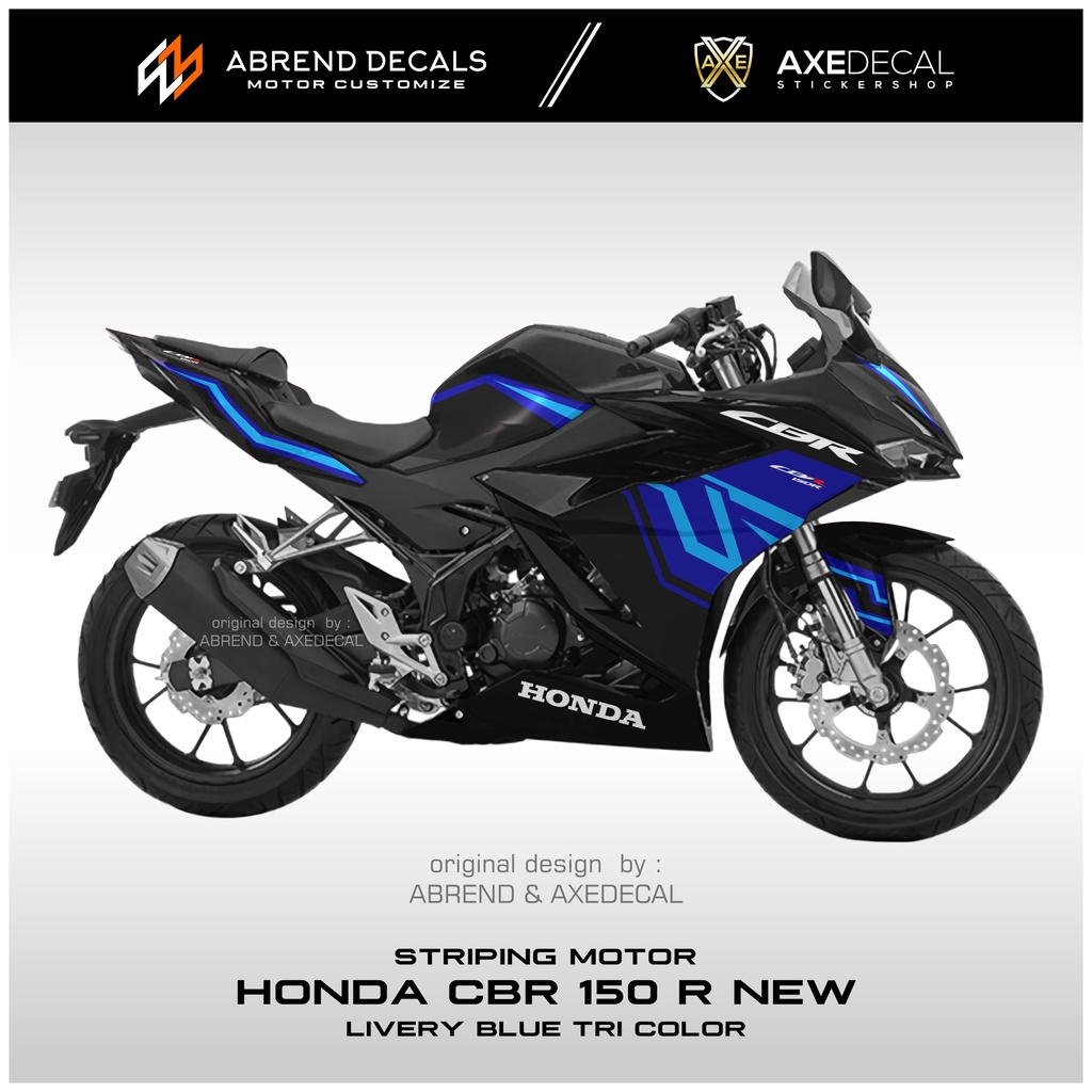 DECAL STRIPING CBR 150 R NEW 2021 LIVERY BLUE TRI COLOR / STIKER MOTOR HONDA CBR 150 NEW DESIGN CUSTOM / STOCK DECALS