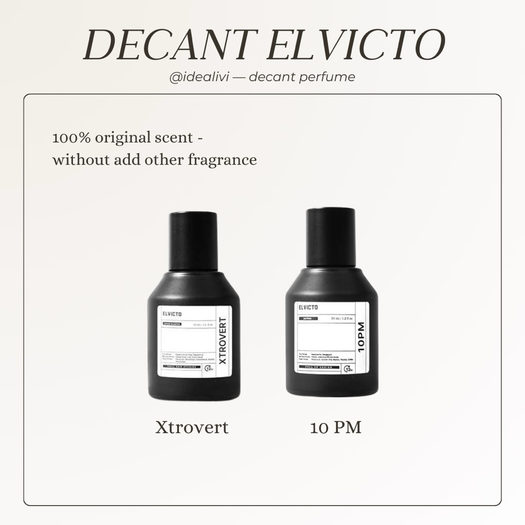 DECANT - SHARE IN BOTTLE - SHARE IN JAR - TESTER PARFUM ELVICTO 10PM EXTROVERT 0,5mL 1mL 2mL 5mL 10mL ORIGINAL 100%