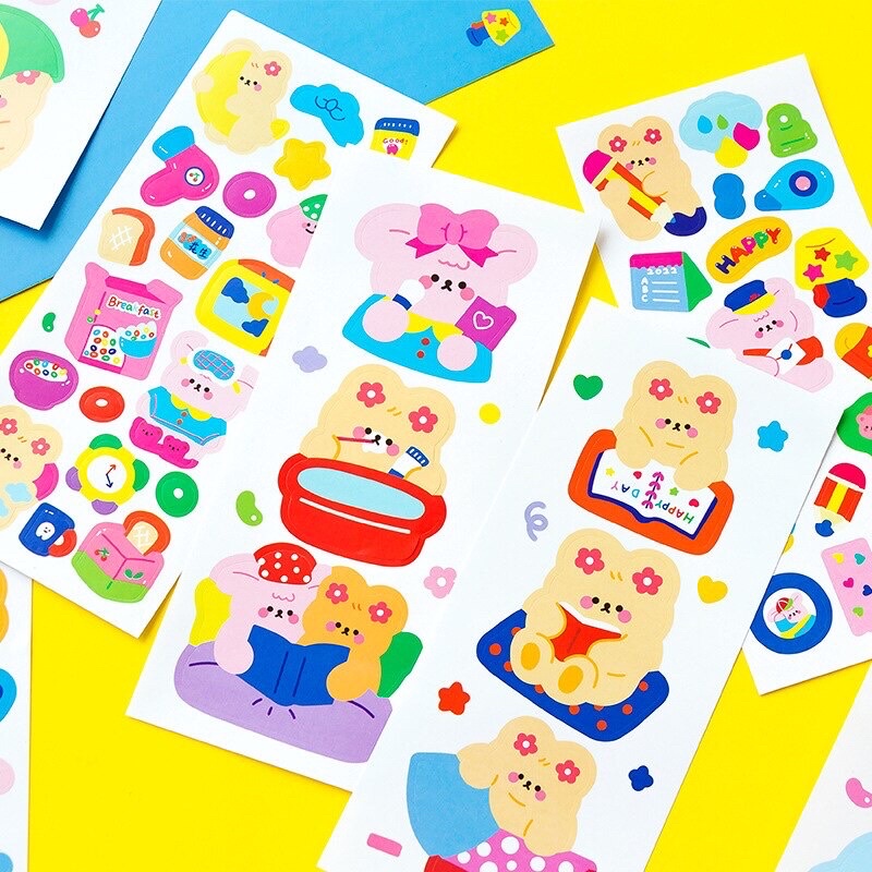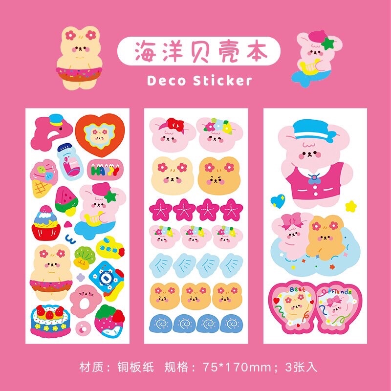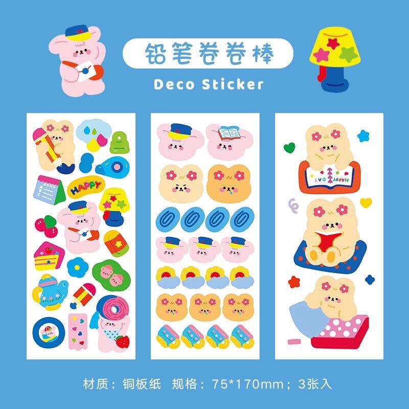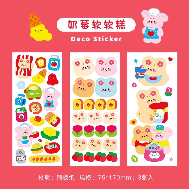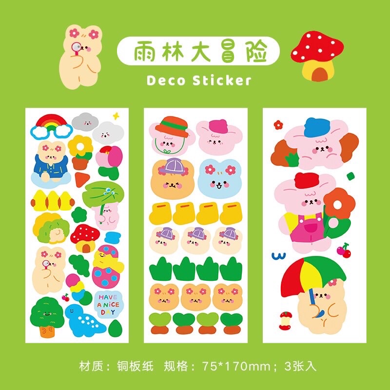 DECO STICKER ART PAPER 3 LEMBAR STIKER LUCU BOTOL MINUM VIRAL ANIMAL CARTOON DEKORASI JURNAL BUKU CATATAN DIARY SCRAPBOOK ORGANIZER AESTHETIC FANCY KAWAII KIYOWO GAYA KOREA JEPANG PVC PET KARAKTER KAR TUN ANAK PEREMPUAN HEWAN IMUT REAL PICT KELINCI BEAR