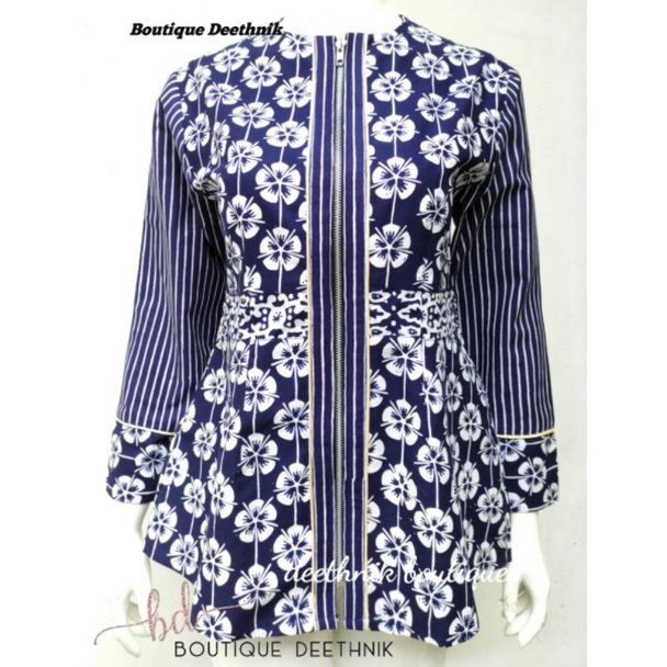 DEETHNIK - baju batik navy blus batik biru batik peplum batik kerja wanita batik warna biru