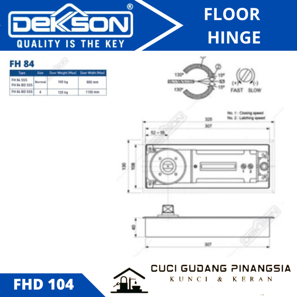 DEKKSON FHD 104 PENUTUP PINTU OTOMATIS FLOOR HINGE FH 84 FULL SET ( STANG )