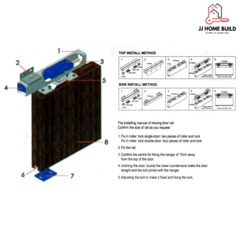 DEKSON Rel Pintu Geser Gantung/Rail Sliding Door Dekkson D3/D4 Alumunium Panjang 180cm/200cm