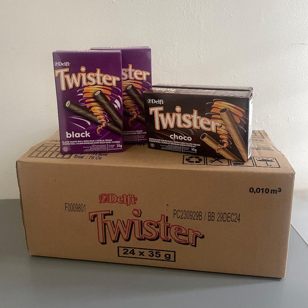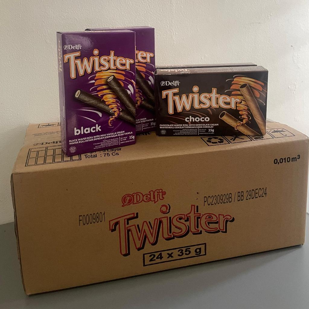 DELFI TWISTER 35GR 1 PACK ISI 24 | CHOCOLATE BLACK VANILLA | COKLAT WAFER ROLL