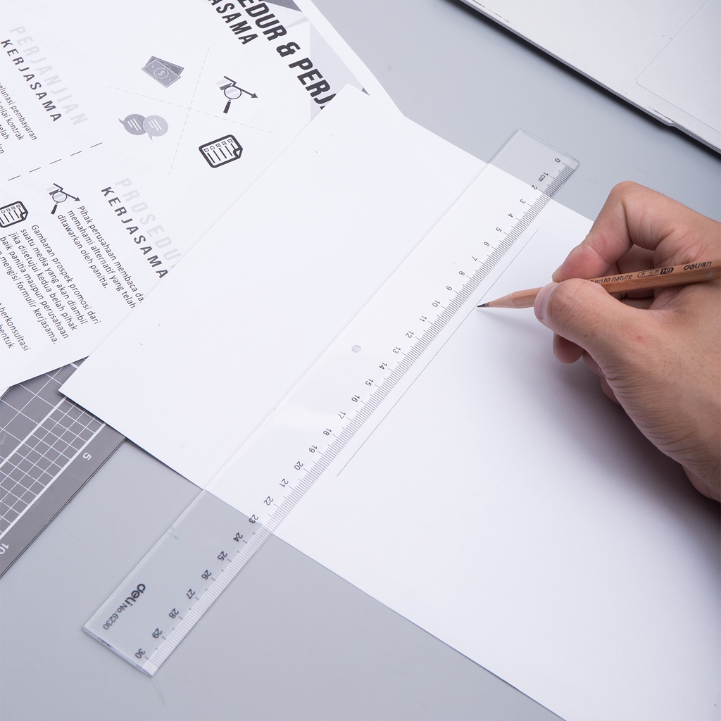 DELI PENGGARIS TRANSPARAN BENING 20cm 30cm KUALITAS TINGGI ALAT TULIS SEKOLAH KANTOR E6220 E6230