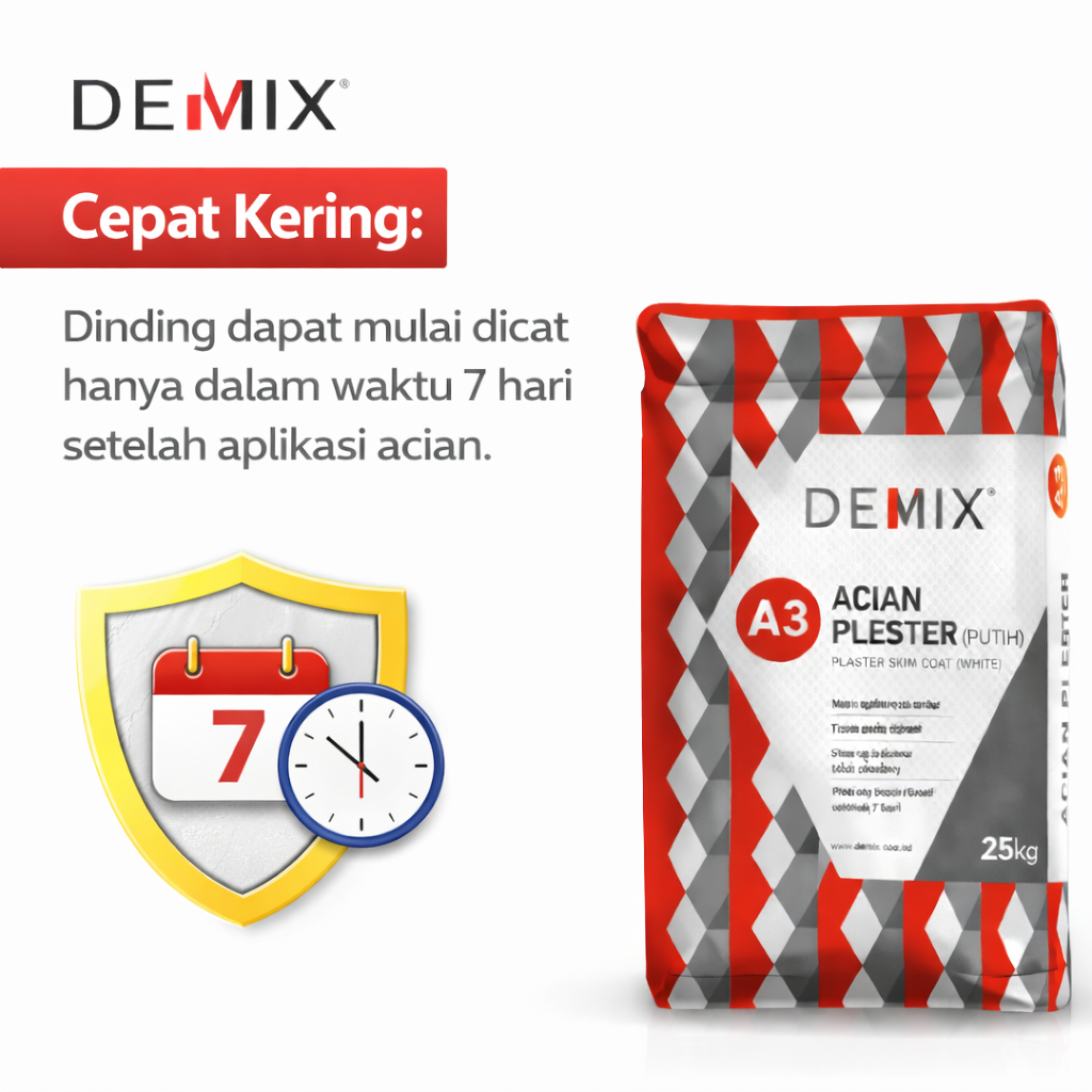 DEMIX A3 ACIAN PLESTER ABU ABU MORTAR INSTAN ACIAN DINDING PLESTER ABU ABU 25 KG