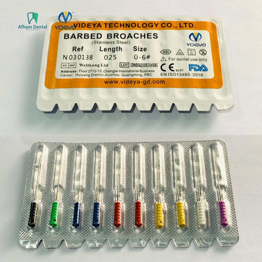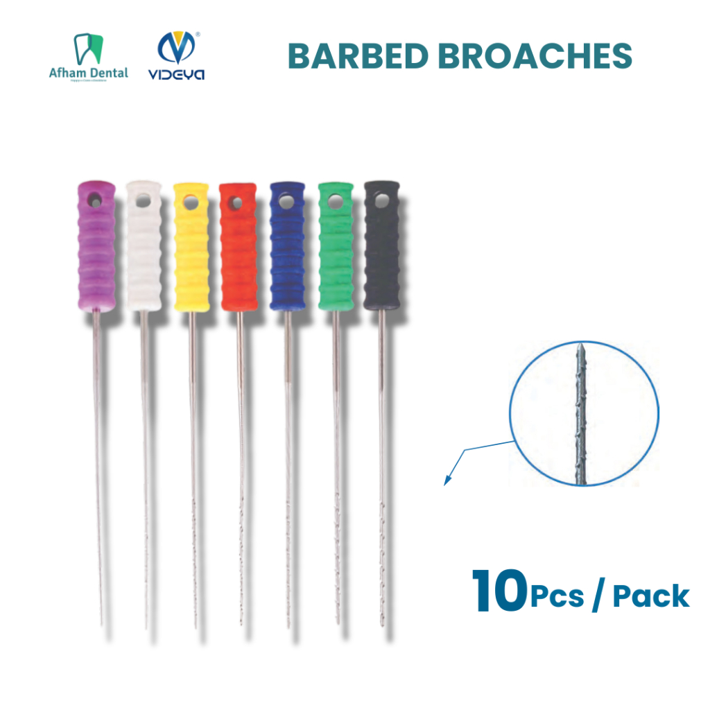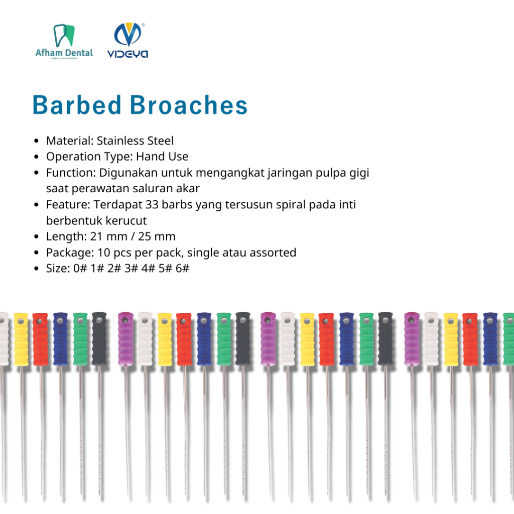 Dental Jarum Endo Ekstirpasi Eksterpasi Barbed Broach Broaches Stainless Steel Videya – 21/25mm – Size 0–6 /10 pcs /Pack