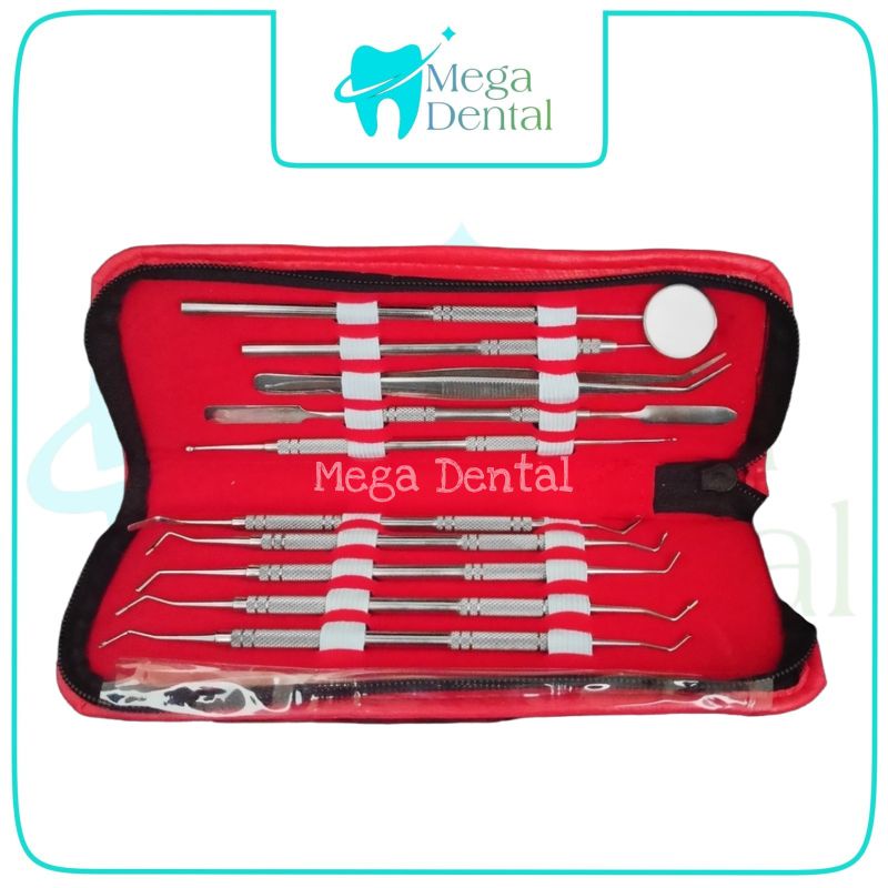 DENTAL STAINLESS STEEL DIAGNOSTIK INSTRUMENT KIT SET DASAR ISI 10 PCS