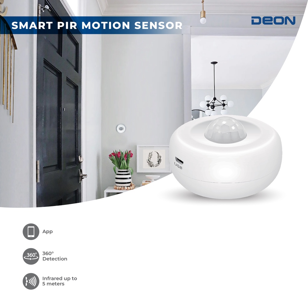 DEON Smart PIR Motion Sensor White | Sensor Gerak | Alarm Rumah Pintar
