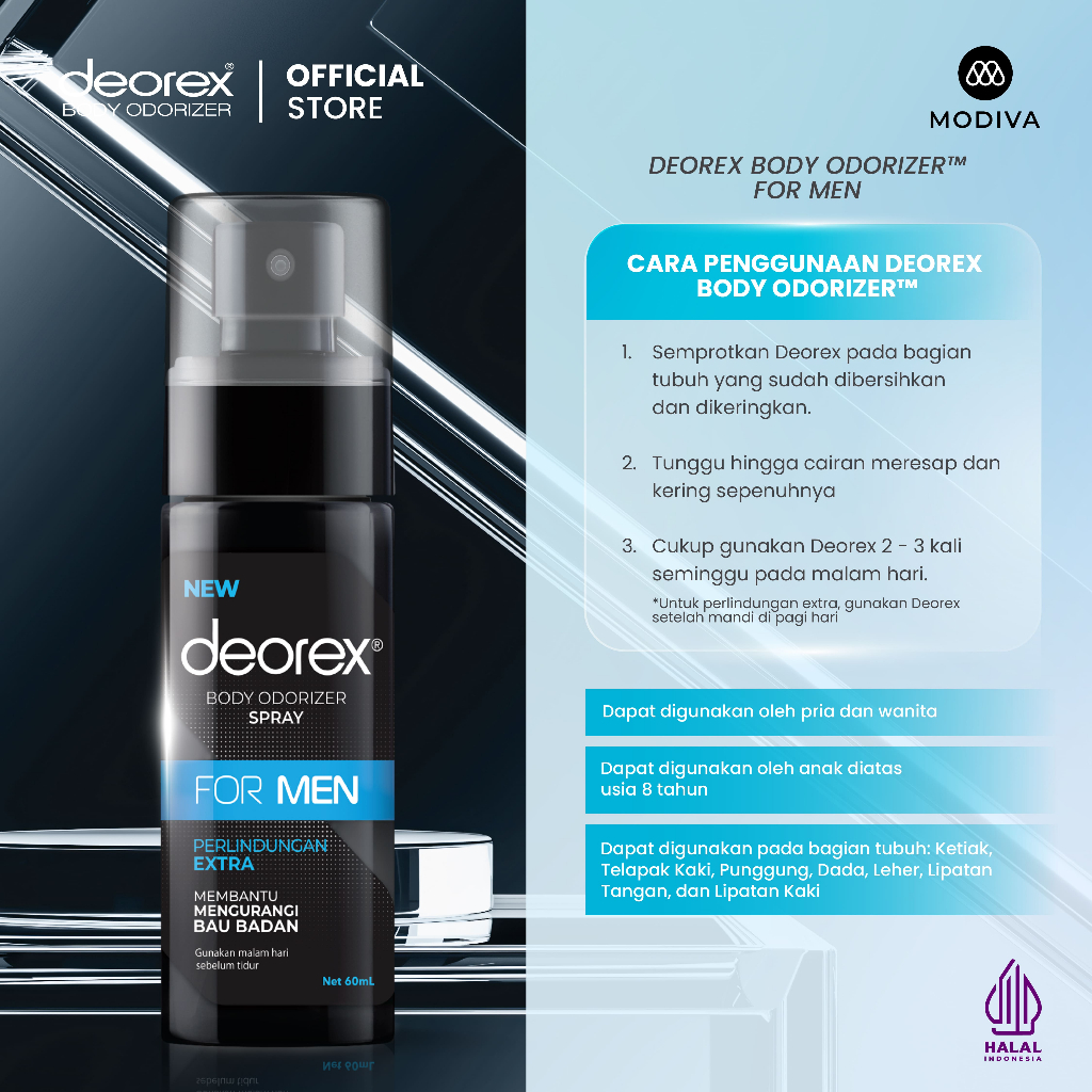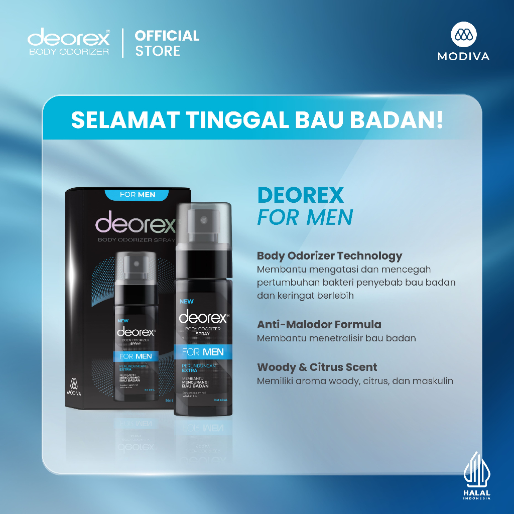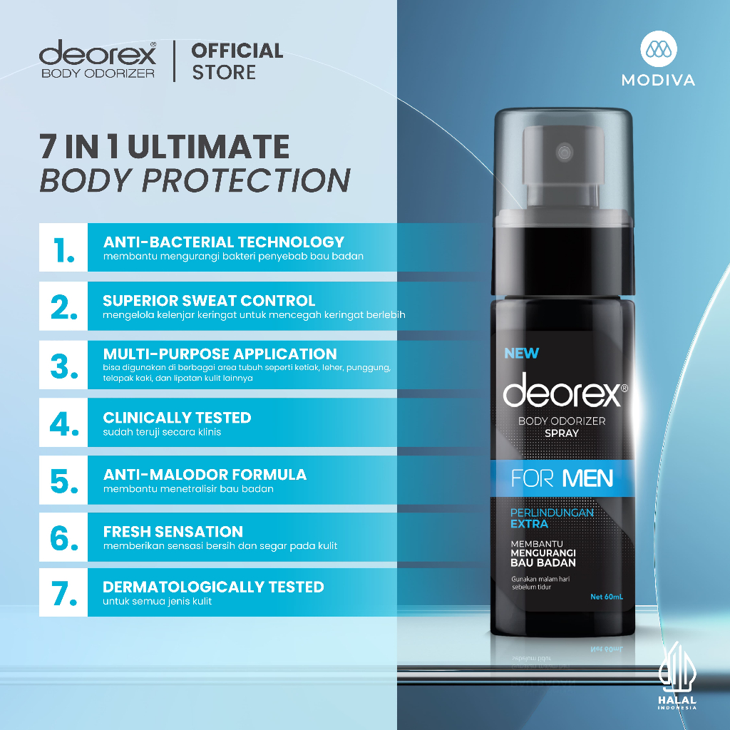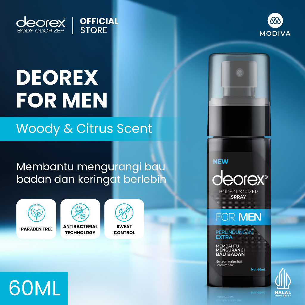 Deorex Body Odorizer For Men Spray 60ml Pengganti Deodorant Antiperspirant Pria Solusi Bau Badan dan Keringat Berlebih