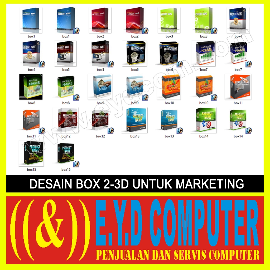 DESAIN COVER BOX 2-3D UNTUK MARKETING KOLEKSI TEMPLATE DESIGN GRAFIS USAHA PERCETAKAN FILE FORMAT P S D