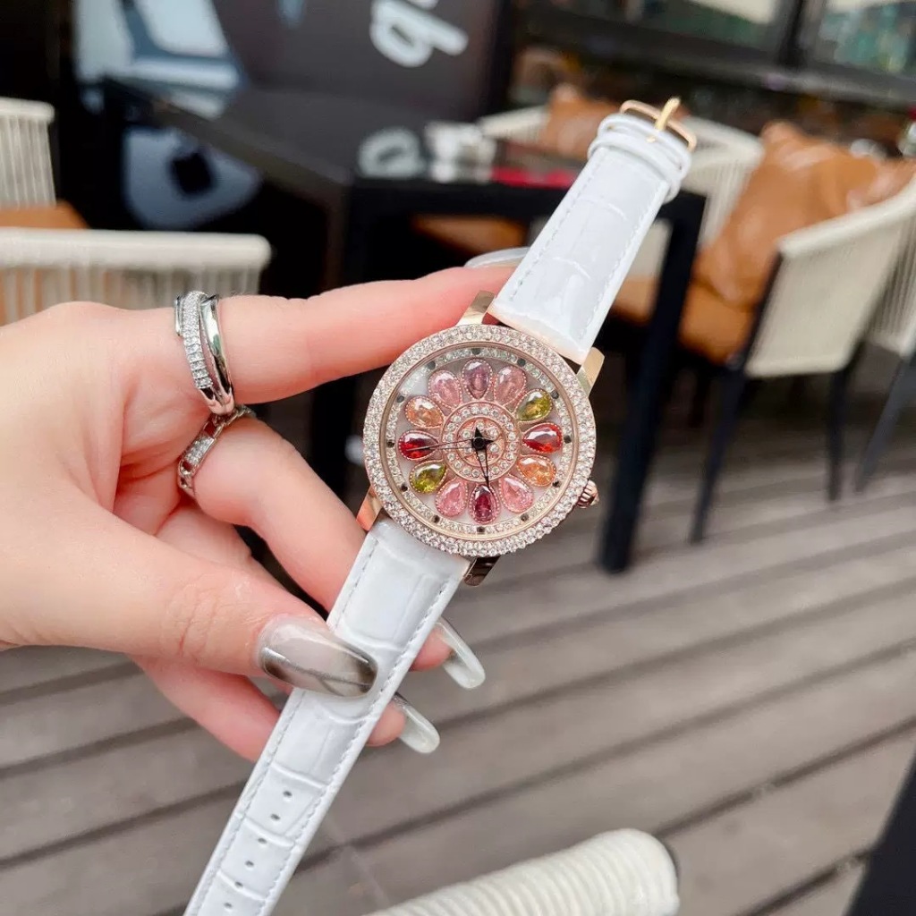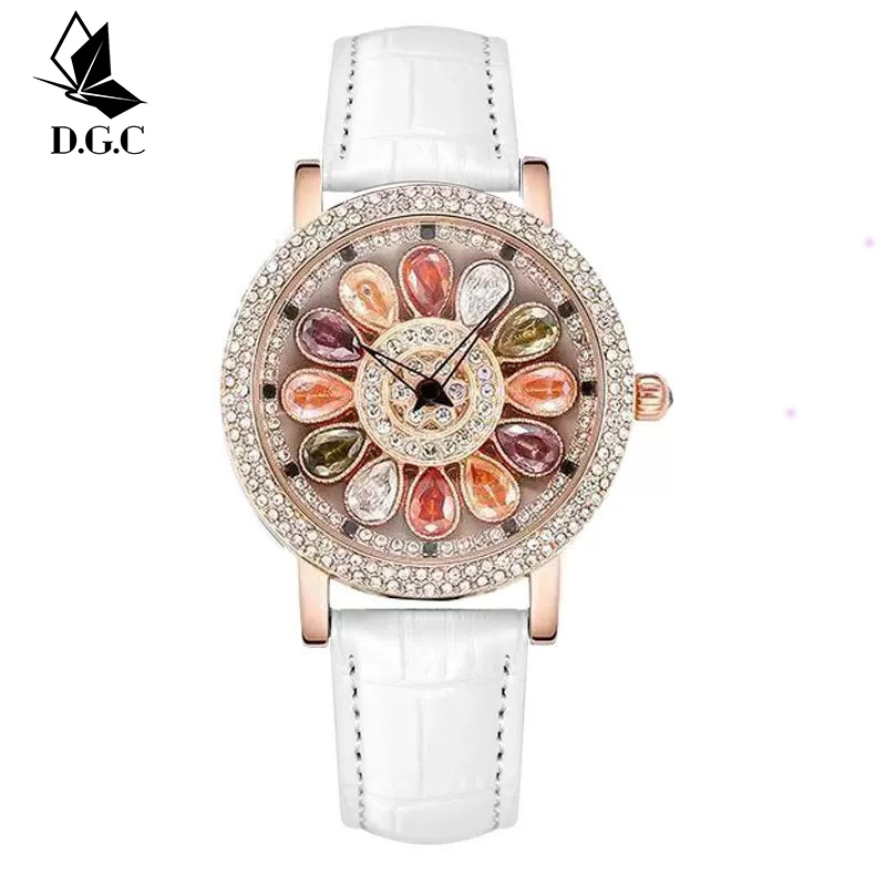 DGC 1009 Jam Tangan Wanita Bergaya Mewah Berkelas Bergaya Gypsophila Bertahtakan Berlian Jam Tangan Fashion Wanita (Free Box+Baterai) Anti Air baru berlian bintang penuh berputar