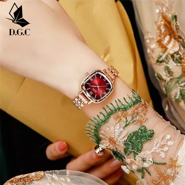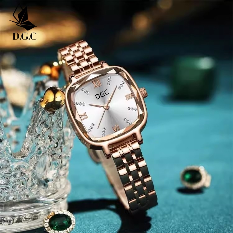 DGC 30140 Jam Tangan Wanita Rantai Rose gold Stainless Steel Kotak Tile Simple Casual Quarts Fashion diamond cod