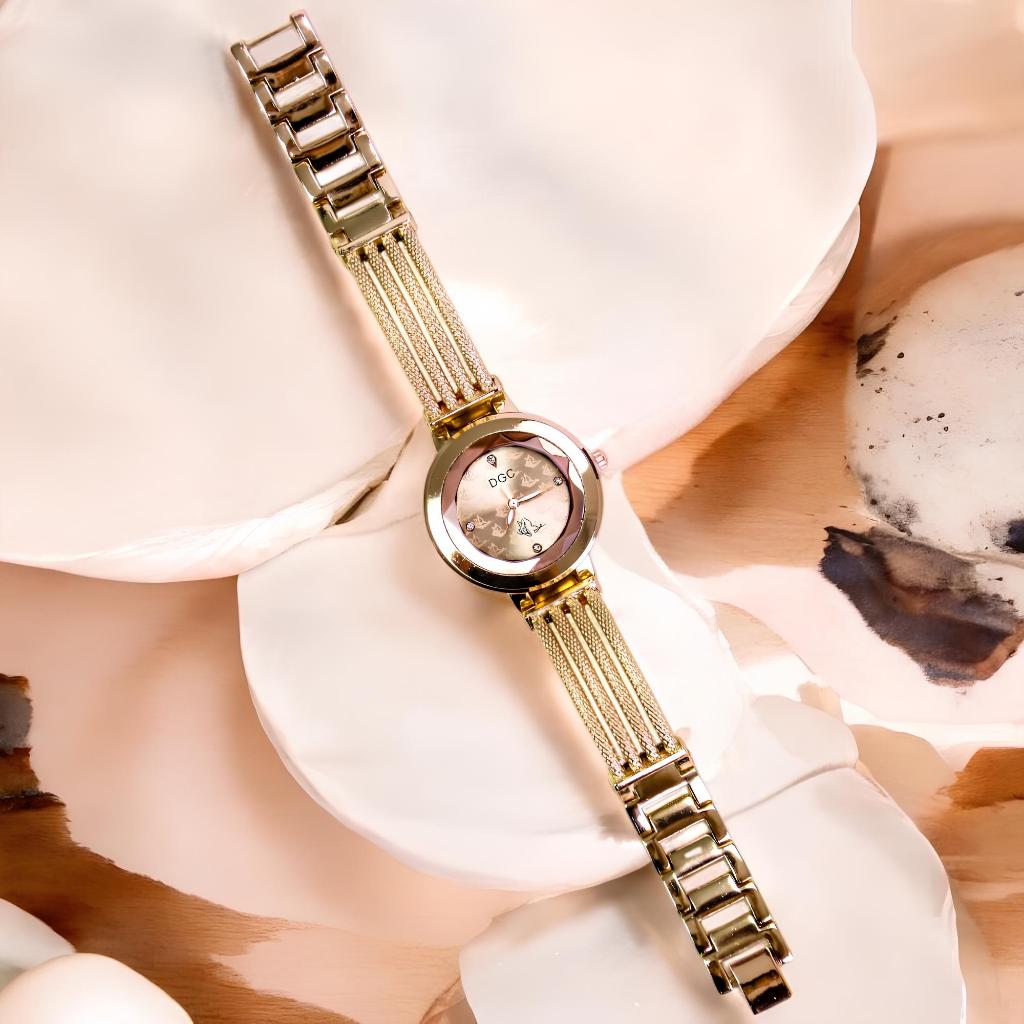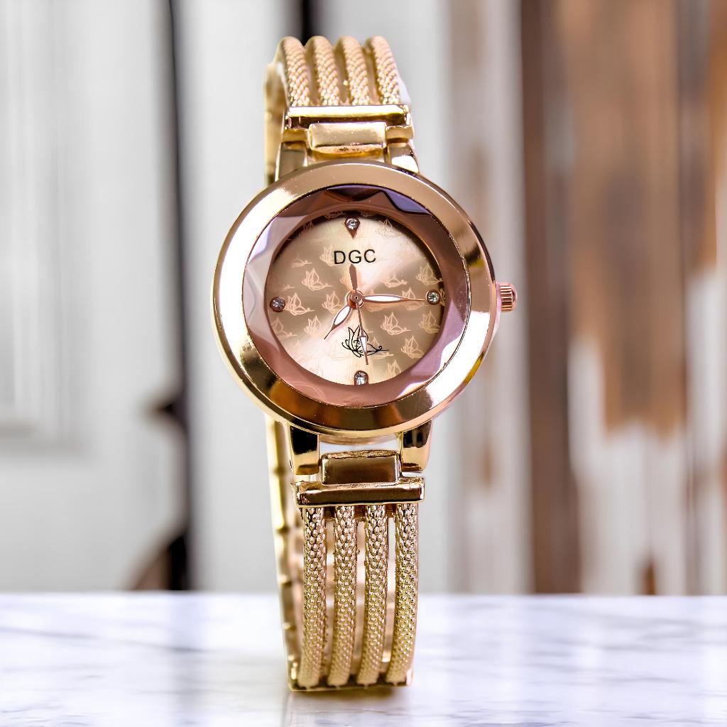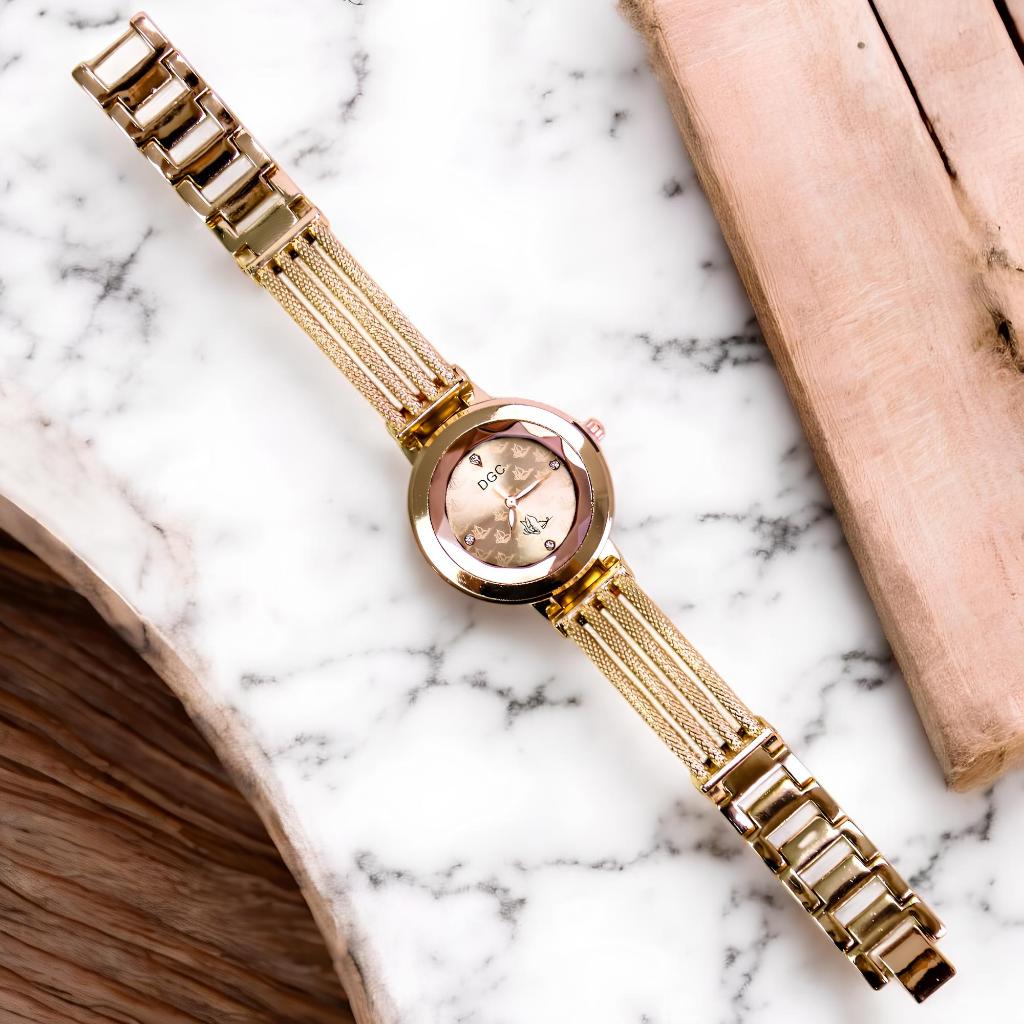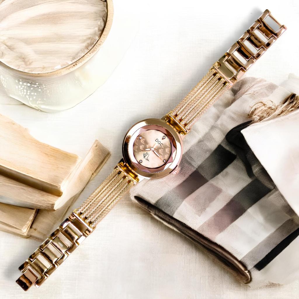DGC G128 Jam Tangan Wanita Rose gold Tali Rantai Analog Indah Quartz Berkelas Fashion (Free Baterai)COD