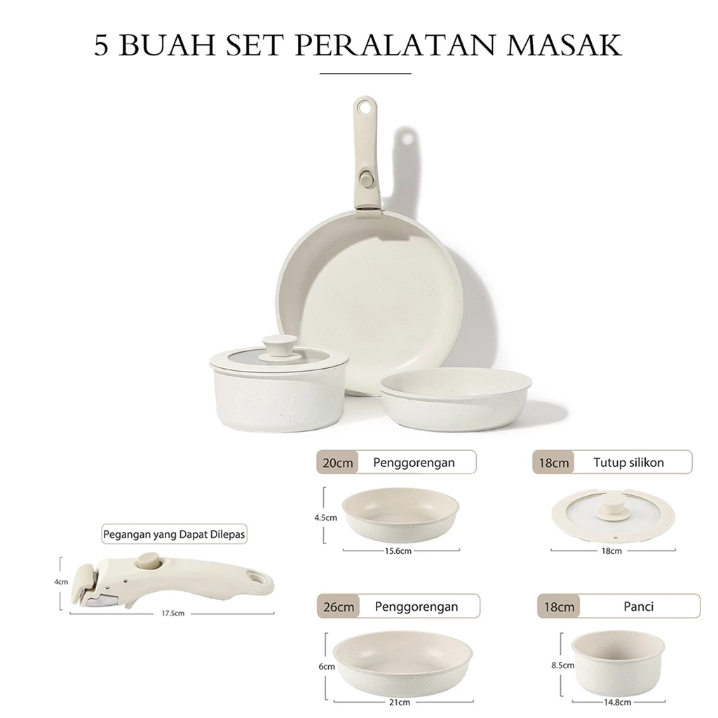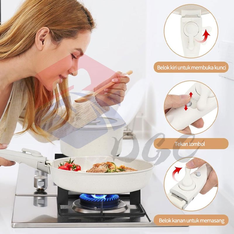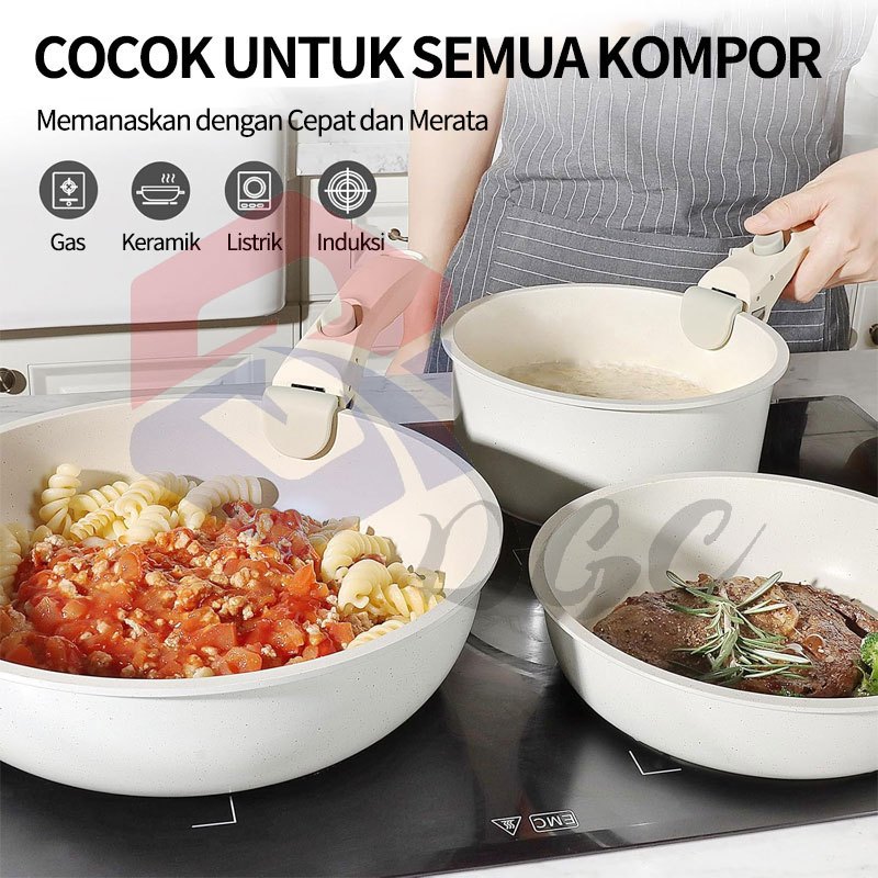 DGC Wajan Rumah Tangga Premium Set Granit Antilengket Peralatan Masak Dapur Gagang Dapat Dilepas
