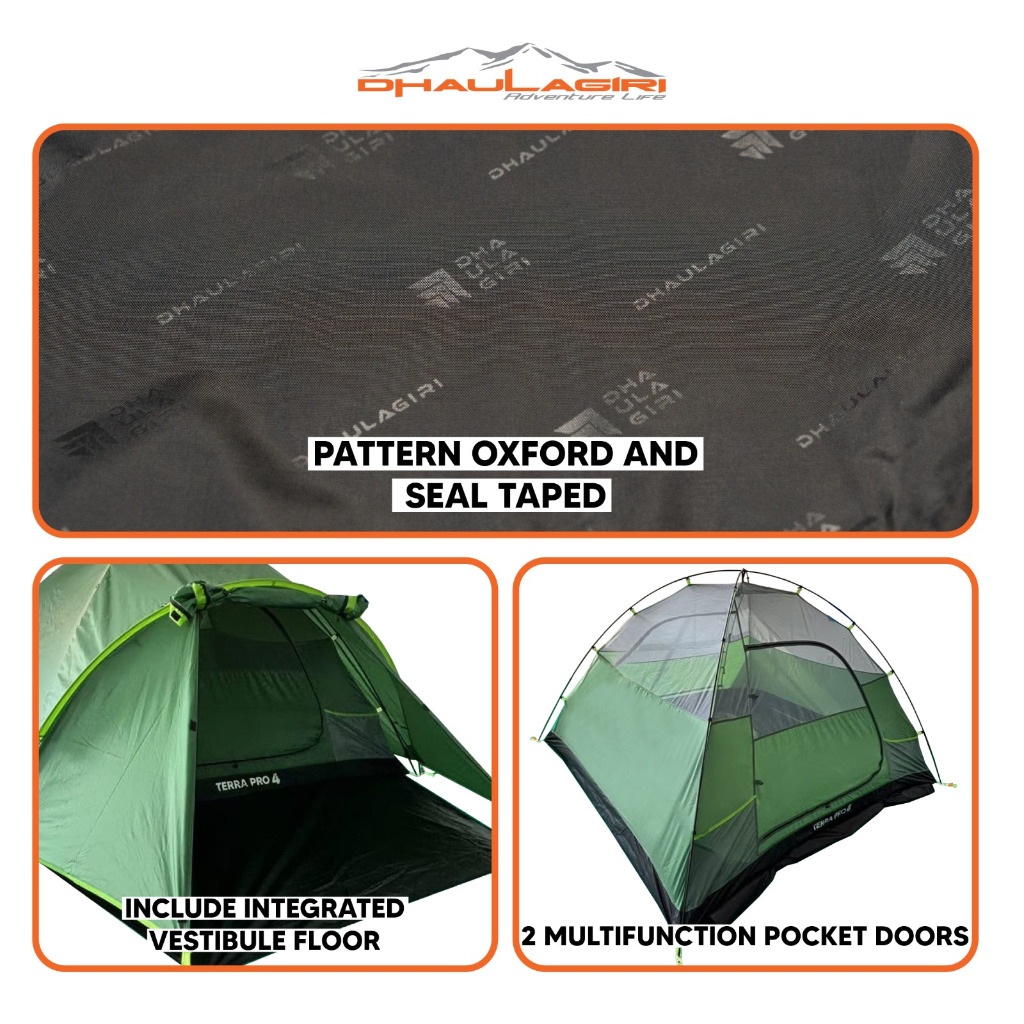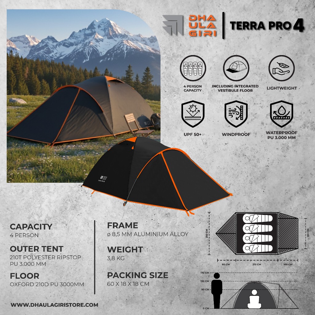 Dhaulagiri - Tenda Camping 4 Orang - Tent Terra Pro 4 - Tenda Double Layer Waterproof dan Alloy PU 3000 mm