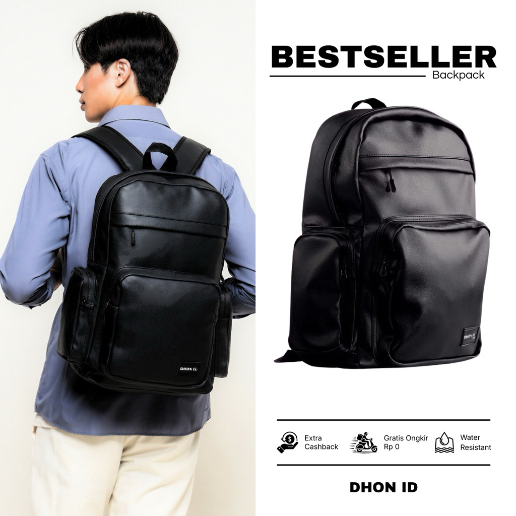 DHON.ID Tas Ransel hitam Pria wanita Waterproof anti air unisex backpack laptop punggung