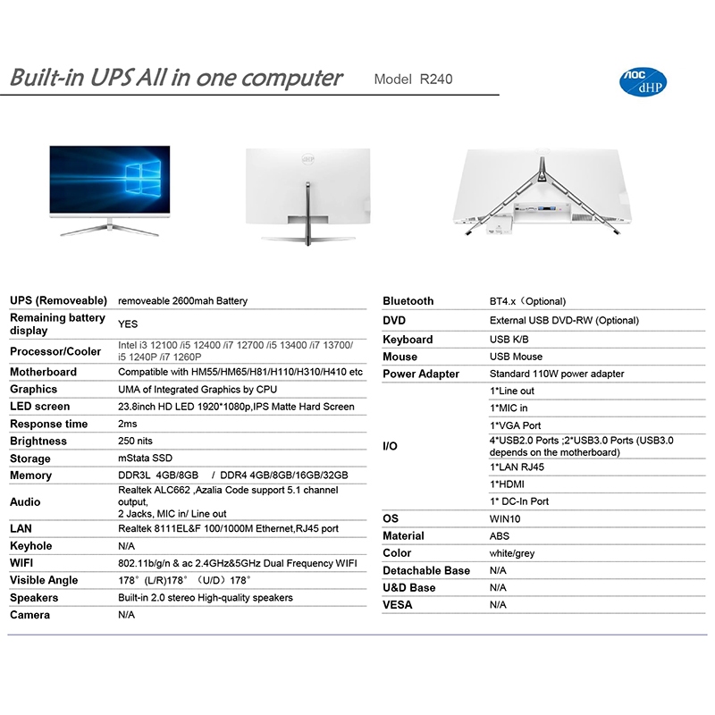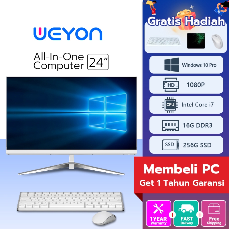 DHP Komputer All in One PC Intel I5/I7 RAM 8GB/16GB+SSD 128GB/256GB Layer HD 24 inch Wireless Gratis Keyboard dan Mouse Rak Kayu Inklusif Garansi 1 Tahun (R240)
