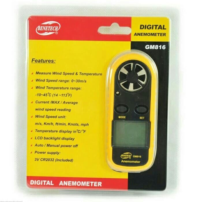 DIGITAL ANEMOMETER PENGUKUR KECEPATAN ANGIN THERMOMETER ANEMO METER