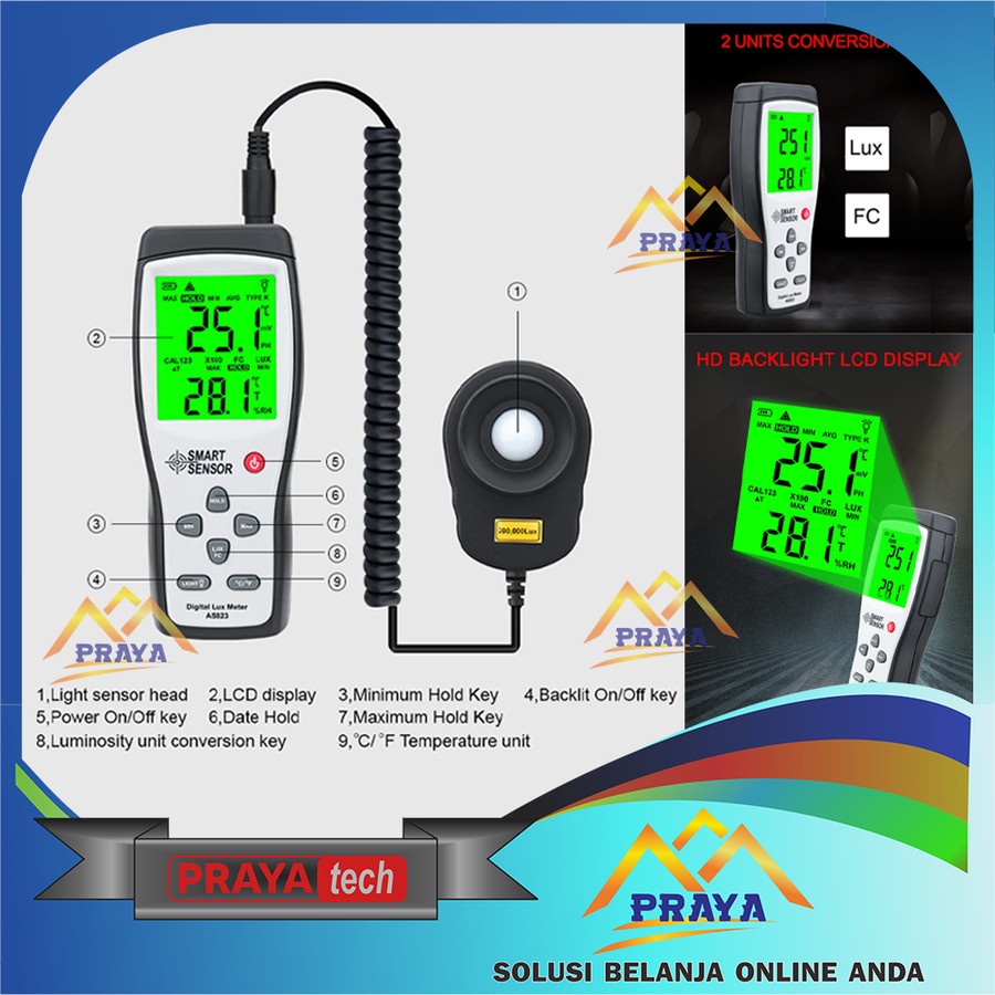 DIGITAL LUX METER ALAT UKUR INTENSITAS CAHAYA TES LIGHT LUMEN TESTER